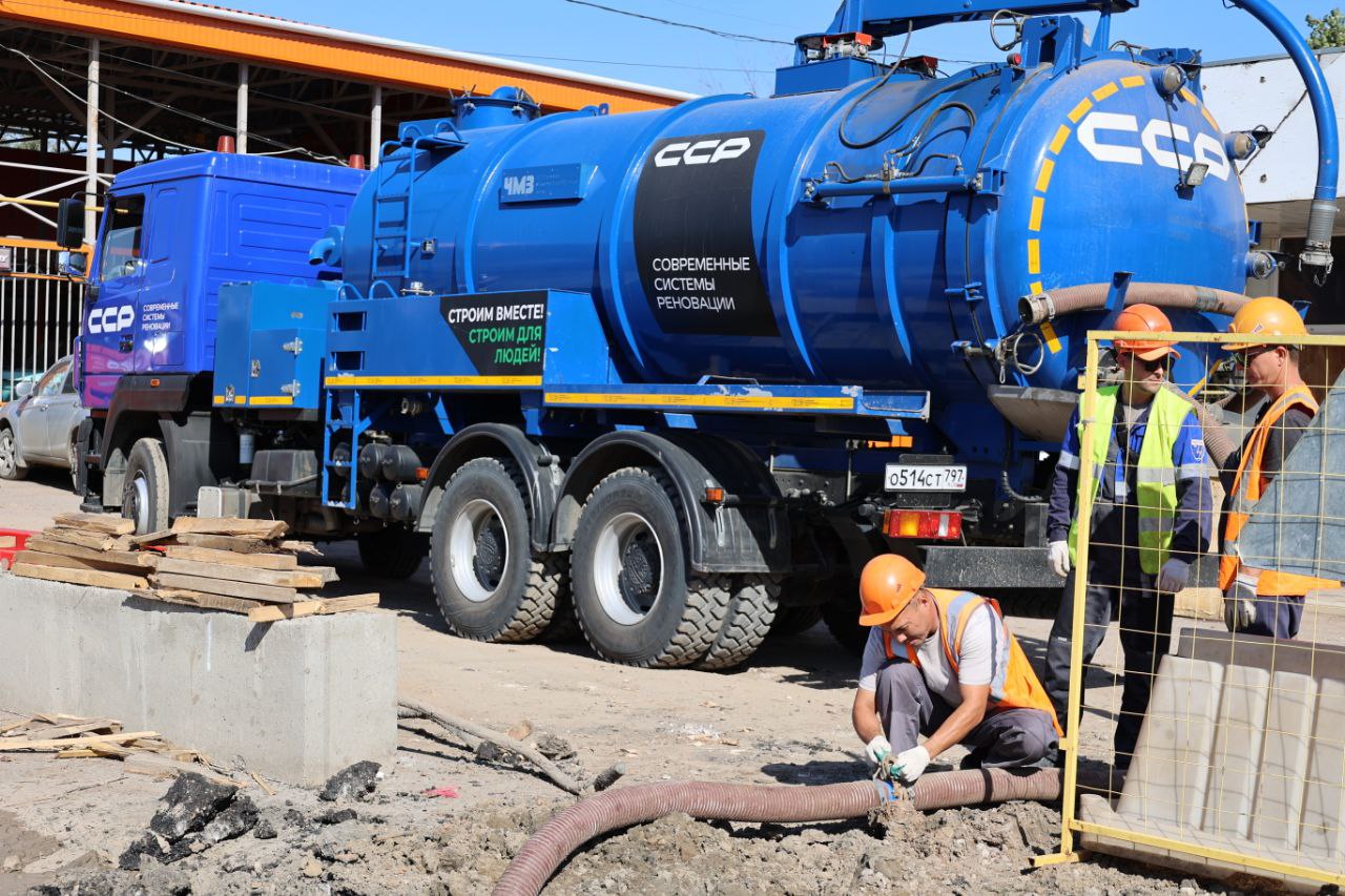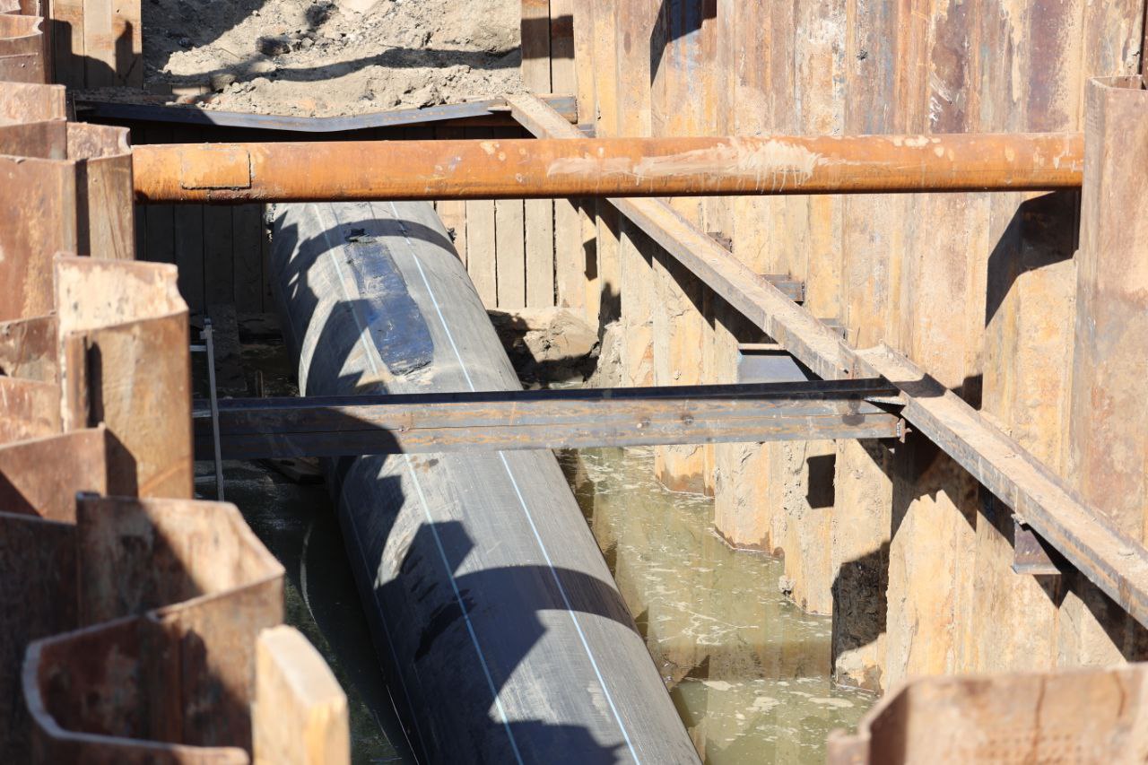 На сегодняшний день методом горизонтально-направленного бурения (ГНБ) проложено 800 м новой трубы из общей протяженности участка в 1200 м. На объекте задействовано 20 специалистов, 7 единиц специализированной техники и 2 установки ГНБ. При этом подрядчик столкнулся со сложными условиями: высоким уровнем грунтовых вод и необходимостью вести работы в непосредственной близости от старой, дефектной трубы, что периодически приводит к аварийным ситуациям.