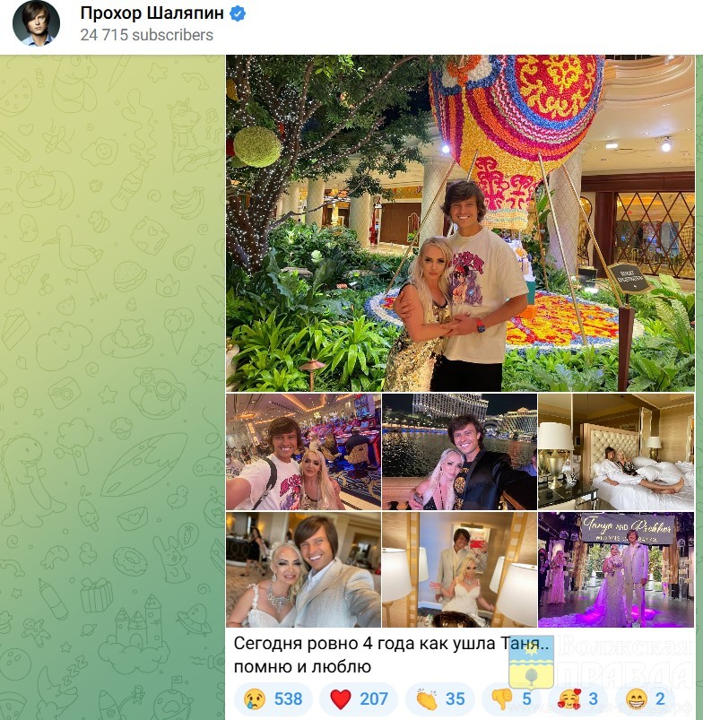 Скорбную строку и яркие фотоснимки с умершейТатьяной Клаудией Дэвисвыложил в своём Telegram канале в минувший четверг, 25 сентября, известный волгоградский шоумэн, певец, актёр и телеведущийПрохор Шаляпин. Известная канадская миллионерша и третья по счёту супруга артиста скончалась от ковида именно в этот день.
