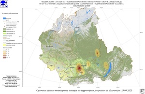 По данным спутникового мониторинга 20-24 сентября на территории Сибири очаги пожаров зарегистрированы в Новосибирской, Томской, Кемеровской, Иркутской, Омской областях, Красноярском, Забайкальском, Алтайском краях.
