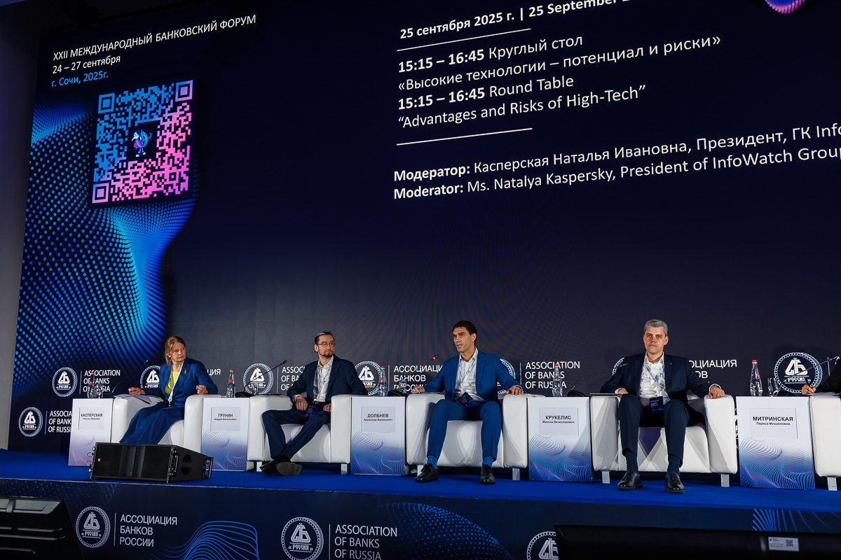 На круглом столе «Высокие технологии – потенциал и риски» эксперты углубились в тему применения искусственного интеллекта в финансовой сфере. Модератор сессии, президент ГК InfoWatch Наталья Касперская поставила вопросы о том, насколько безопасно внедрять искусственный интеллект и на какие потенциальные риски стоит обратить внимание компаниям. Также она обозначила проблему ответственности за решения и ответы ИИ.