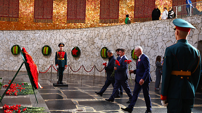Кроме того, Евгений Филиппов посетил мемориальный комплекс «Героям Сталинградской битвы» на Мамаевом кургане, где возложил цветы к Вечному огню в Зале Воинской Славы, почтив память защитников Отечества.