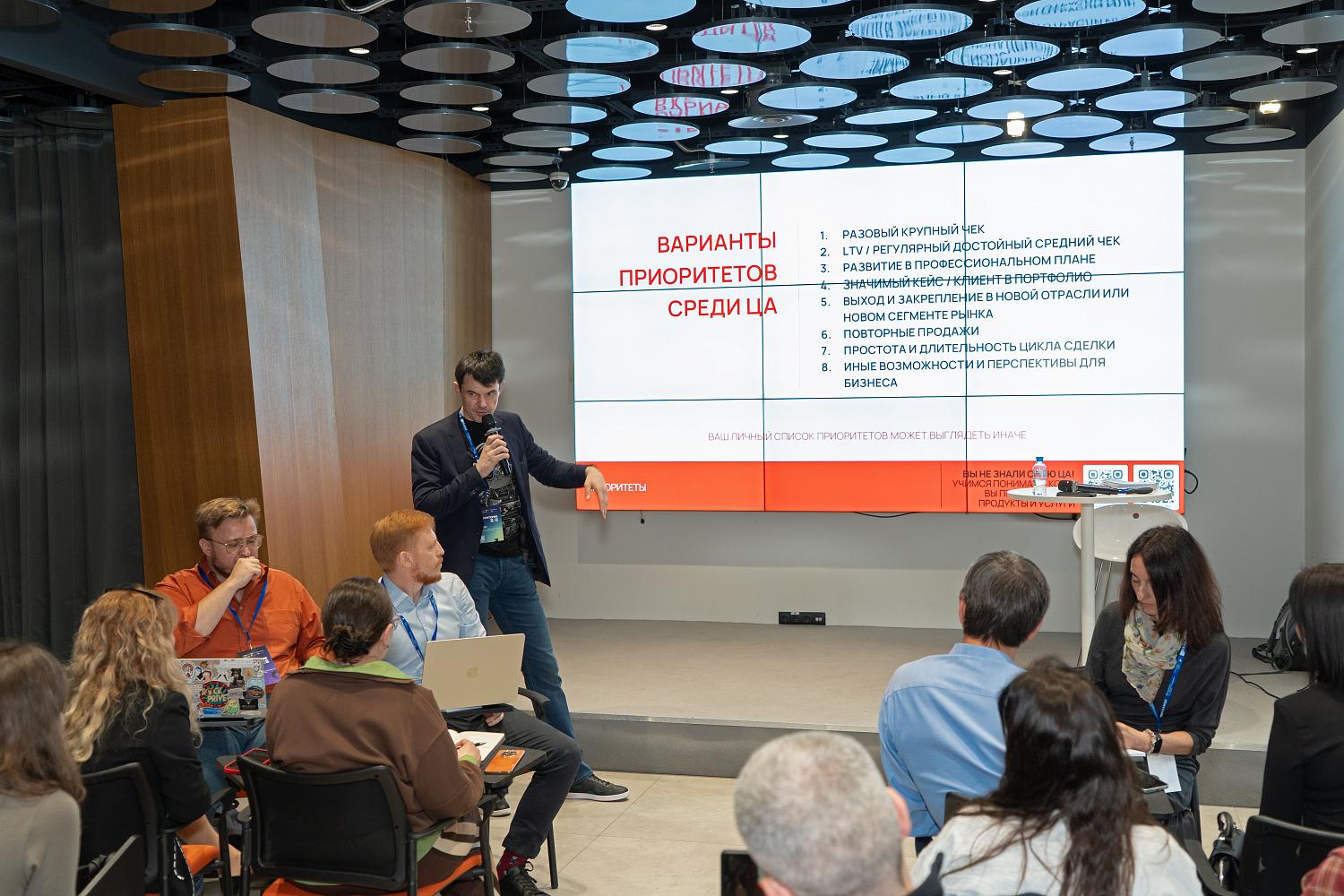 В зале «Практика» эксперт по маркетингу, управляющий партнер Маркетингового бюро «Фактура» Алексей Гряцких провел мастер-класс по глубокому пониманию целевой аудитории в B2B. В работе приняли активное участие более 30 человек в составе сборных команд.