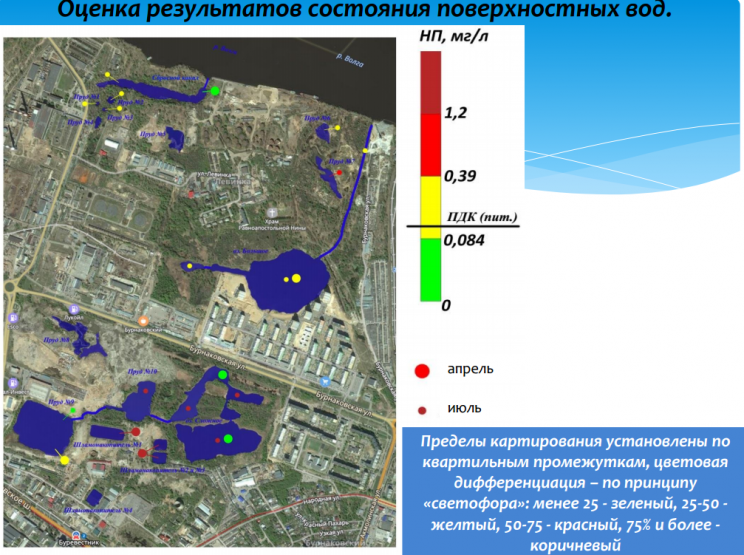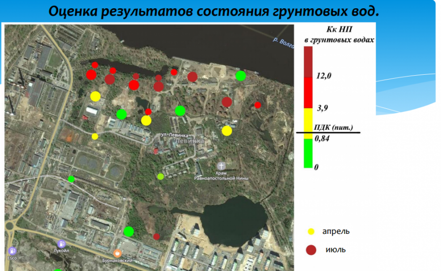 Они, в свою очередь, создали три объекта загрязнения. Самый главный — линза нефтепродуктов над уровнем подземных вод. Местами поражение грунта достигает 40 метров в глубину. Еще два поверхностные — это отравленная почва и кислые гудроны. Пруд кислых гудронов соединен с другими водоемами, имеющими выходы к Волге. А значит, его содержимое попадает в реку.