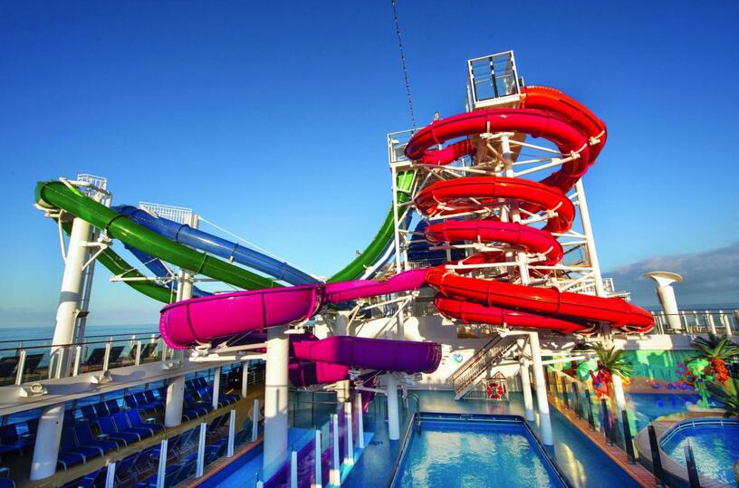 Лайнеры предлагают детям и подросткам великолепные бассейны, аквапарк и захватывающие горки, включая Aqua Slide coaster, первую в мире горку, которая сочетает американские горки и водную горку, расположенную на лайнере Norwegian Aqua, который был спущен на воду в этом году.