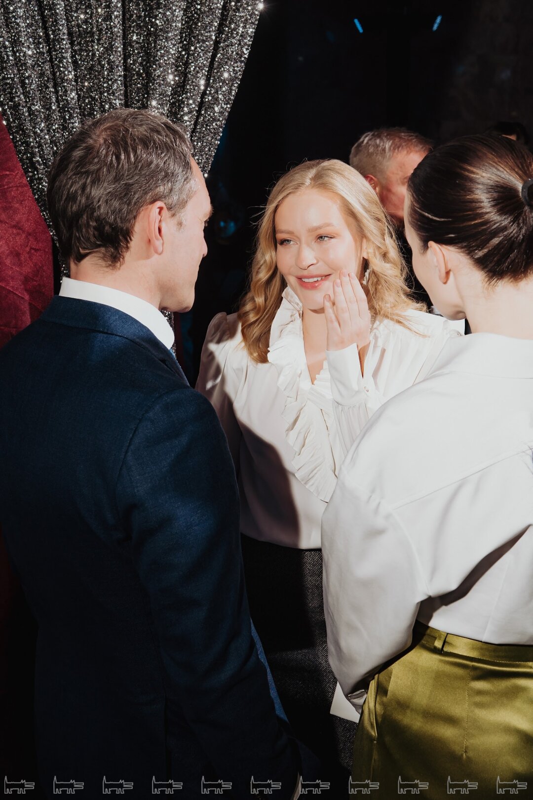 25 сентября в Мраморном зале на премьерный показ собрались crème de la crème Петербурга: прима Театра имени Эйфмана Мария Абашова, искусствовед и писательница Ирина Оганова, галерист Марина Гисич, директор Александринского театра Александр Малич, пионер актуальной каллиграфии Покрас Лампас и многие другие.