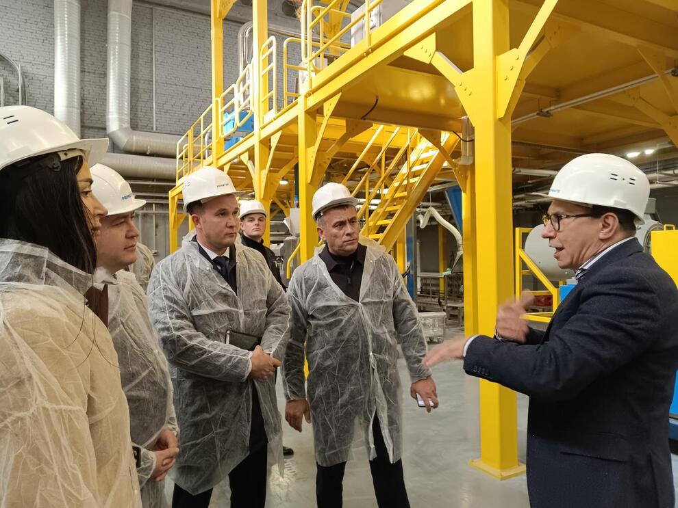 Директор ООО НПК «Приматек» Дмитрий Дронь провел экскурсию для узбекской делегации, продемонстрировав цеха по производству порошковых и наливных красок, склады готовой продукции.