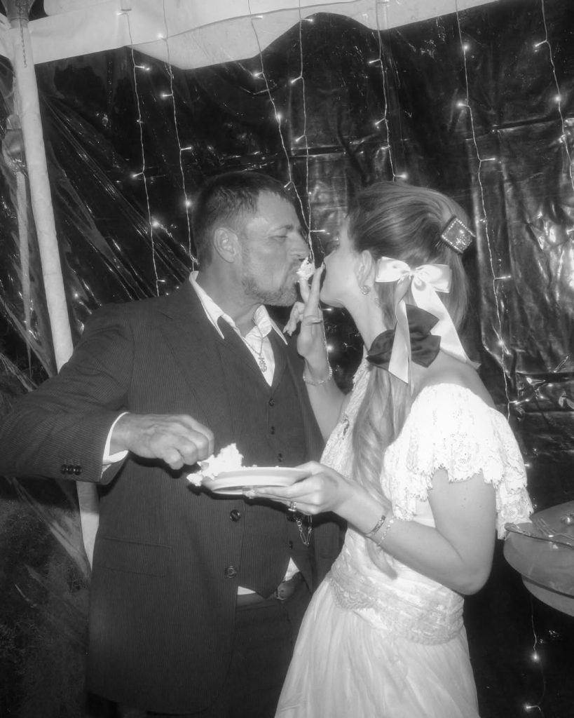 Накануне Лана Дель Рей опубликовала в запрещенной социальной сети серию архивных кадров со свадьбы с Джереми Дюфреном в честь первой годовщины их брака.