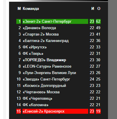 Что касается «Звезды», то она с 25-ю очками - на 10-м месте.