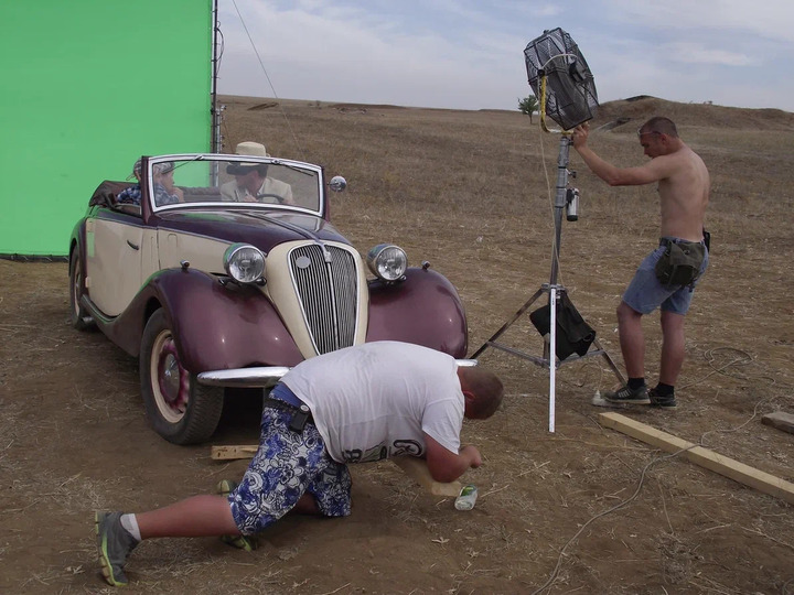 Скупой холмистый пейзаж в окрестностях сакского озера Кызыл-Яр сошел за южную часть Аризоны. Там по пыльной грунтовой дороге на «Фиате» 1936 года выпуска мчался к мексиканской границе американский морпех Стэнли Либер с красавицей женой Шейлой и их малышом Джереми. За рулем раритетного автомобиля актер Алексей Бардуков. Его сложно было узнать даже со второго пристального взгляда - так над ним «поглумились» гримеры: лицо в шрамах, на лоб спадает длинная челка из-под шляпы канотье, глаза скрыты за черными стеклами солнцезащитных очков.
