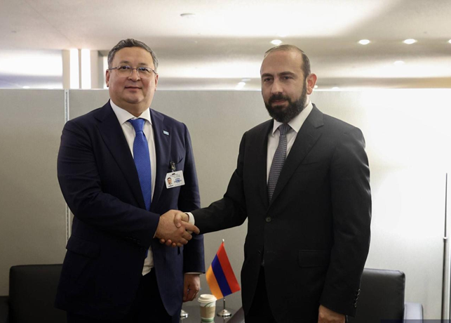 Министр иностранных дел Армении Арарат Мирзоян 24 сентября в Нью-Йорке провел встречу с вице-премьером, министром иностранных дел Казахстана Муратом Нуртлеу.