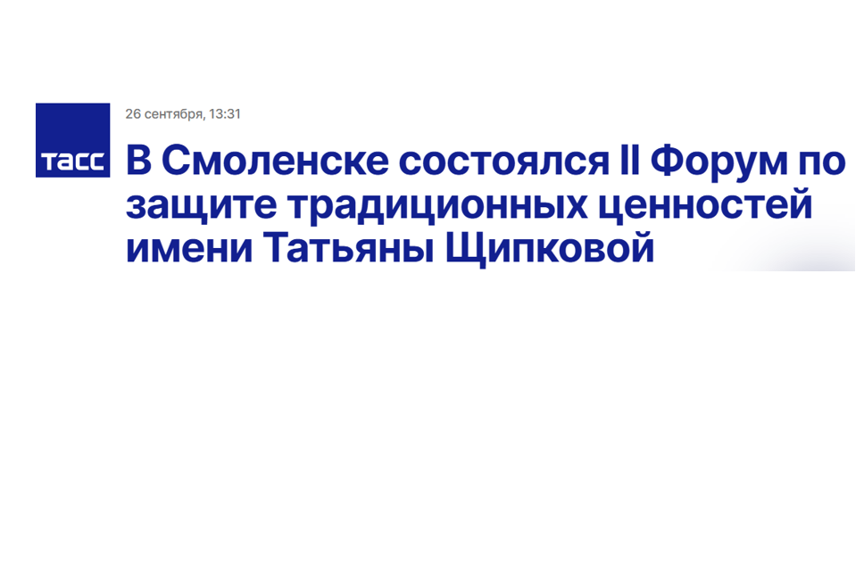 Вчера в Смоленске, в день 82-летия освобождения города от немецко-фашистских захватчиков, состоялся II Форум Всемирного русского народного собора по защите традиционных ценностей имени Татьяны Щипковой "Русский мир против нацизма" (16+).