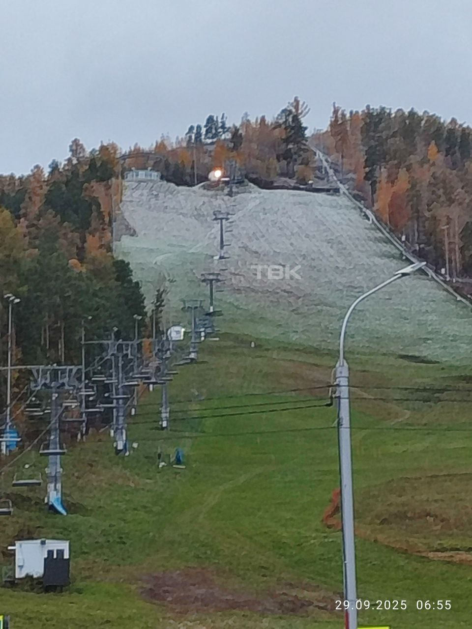 Снег выпал в Бобровом логу. Красноярец сделал фото в 7 часов утра.
