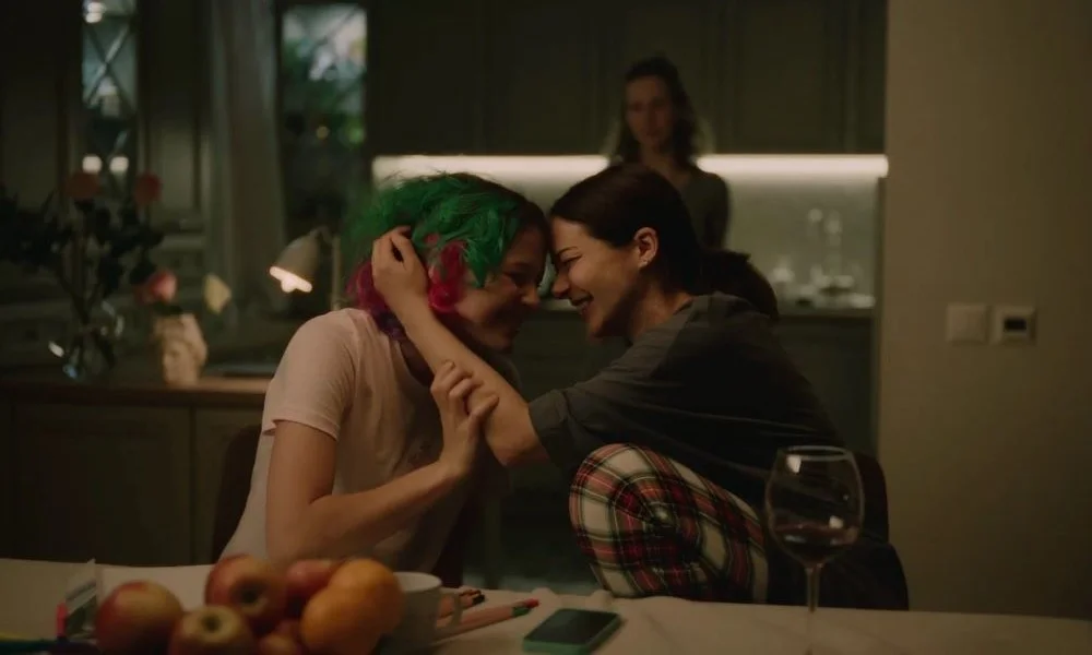 Что до истории, собственно, подрастающей части семьи Леры, неожиданно занимающей добрую половину хронометража сериала, то перед нами, увы, предстает клише на клише. Согласно Кузнецовой, типичный бунтующий зумер выражает себя посредством покраски волос в едкий розовый и зеленый, а также устраивая одиночные пикеты и обнажаясь перед одноклассниками под Алену Швец. А, ну и пуляясь в сторону обидчиков громкими словами вроде харассмента и газовым баллончиком. Что выглядит уж особенно неловко на контрасте с действительно современным, пусть и успевшим набить оскомину «Переходным возрастом», что не прыгает с одних нарративных рельсов на другие, теряясь на перепутье.