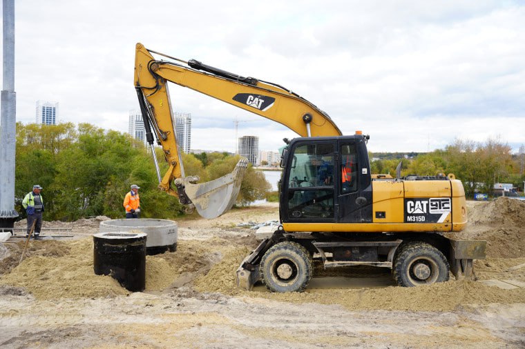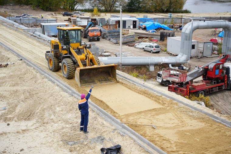 На самой переправе завершается монтаж системы водоотвода, устанавливаются опоры уличного освещения и декоративное ограждение, отделяющее проезжую часть от пешеходной зоны и трамвайных путей.