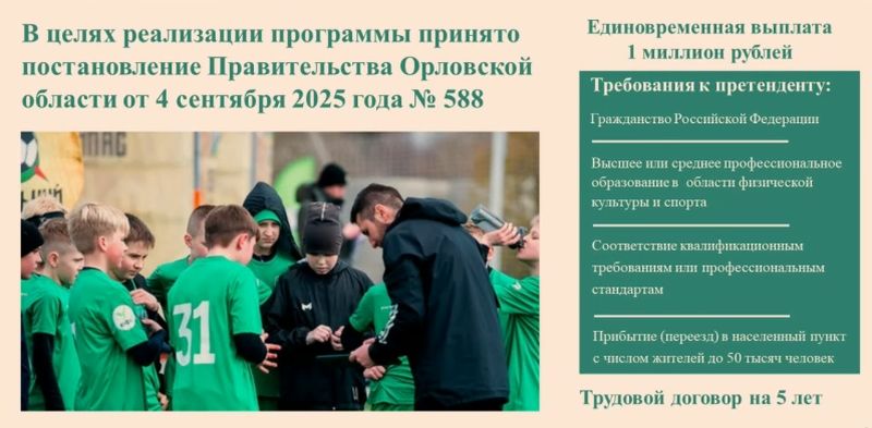 По информации руководителя регионального Департамента физической культуры и спорта Елена Казачковой, работники физической культуры и спорта, переехавшие на работу в населённые пункты региона с численностью до 50 тыс. человек, смогут получить выплату в размере 1 млн рублей.