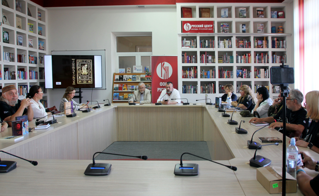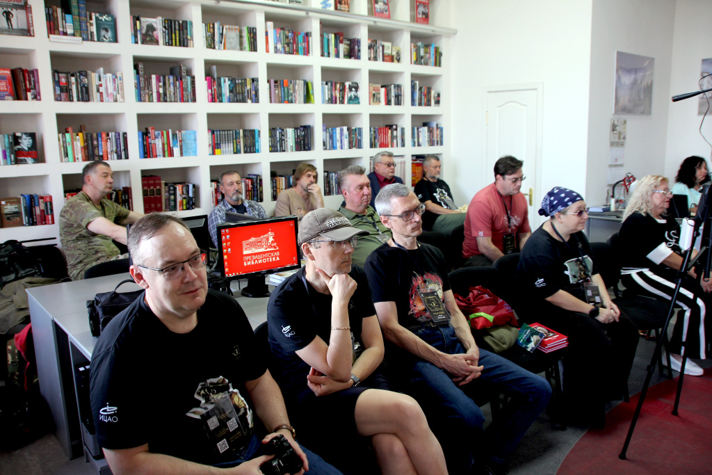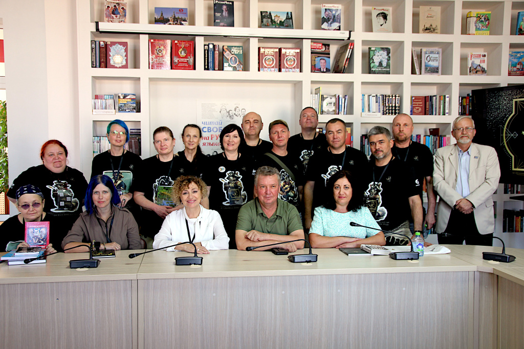 Модератором встречи выступил Владислав Русанов, донецкий писатель, поэт, переводчик, член Союзов писателей ДНР и России. Он провёл содержательный обзор книг, изданных в республике за 11 лет. Также прозвучало выступление Александра Сигиды-младшего, поэта и участника СВО, речь в котором шла об издаваемой в Донецке серии книг «СВОи люди». Идея серии заключается в издании компактных книг, помещающихся в карман уставной камуфляжной формы. Это поэзия и проза участников СВО, которые воюют на донбасском участке фронта, – местных авторов из числа добровольцев первой волны или мобилизованных в 2022 году, прозаиков и поэтов из других регионов России, по воле судьбы оказавшихся в Донбассе, а также «гуманитарщиков» и волонтёров, осуществляющих всемерную поддержку фронту. Главное условие, которое озвучили учредители серии, – качественный текст. Сейчас в серии вышло уже 7 книг. Александр Сигида-старший, член Союзов писателей ЛНР, ДНР и России, Межрегионального союза писателей, рассказал о луганских изданиях и предстоящем фестивале «Муза Новороссии».
