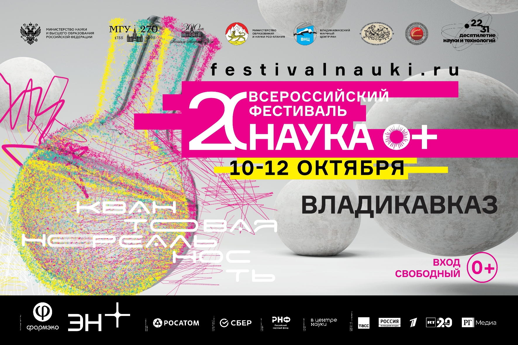 В период с 10 по 12 октября 2025 года во Владикавказе пройдут заключительные мероприятия XIII Владикавказской региональной площадки Всероссийского фестиваля науки «Nauka 0+» (далее – ВРП ВФН).