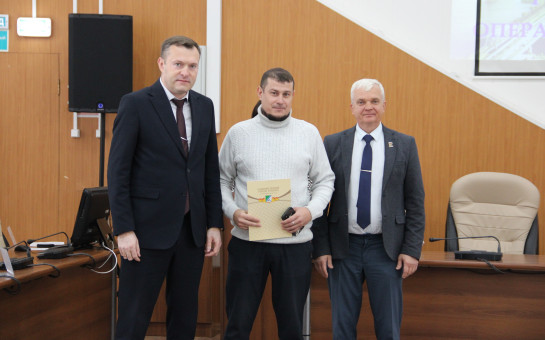 Сегодня на еженедельном аппаратном совещании глава города Семён Лапицкий и председатель Совета депутатов Владимир Голубев наградили Максима Баронова благодарственным письмом за активную гражданскую позицию, мужество и решительность при спасении ребёнка в экстремальных условиях.