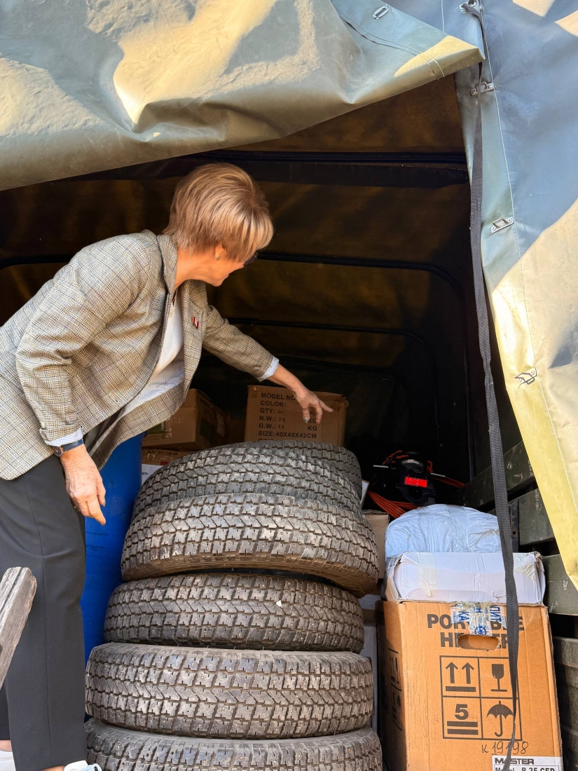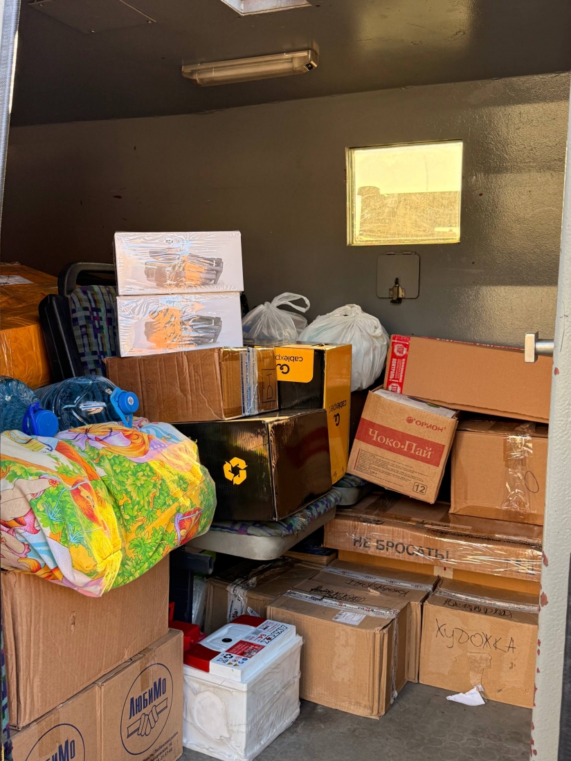 В коробках — самое необходимое для фронта: запчасти, беспилотники, маскировочные сети, окопные свечи и тепловые пушки. Неравнодушные омичи также принесли продукты питания — сгущёнку, консервы, мёд и другие полезные припасы.