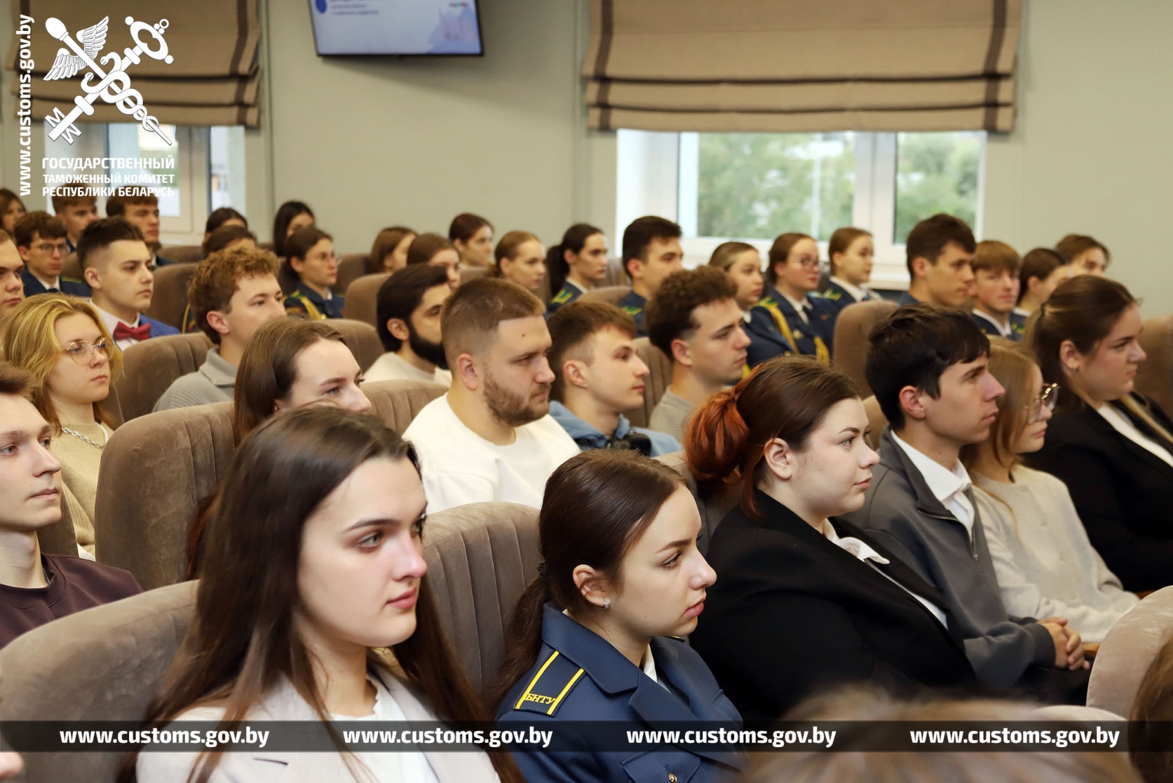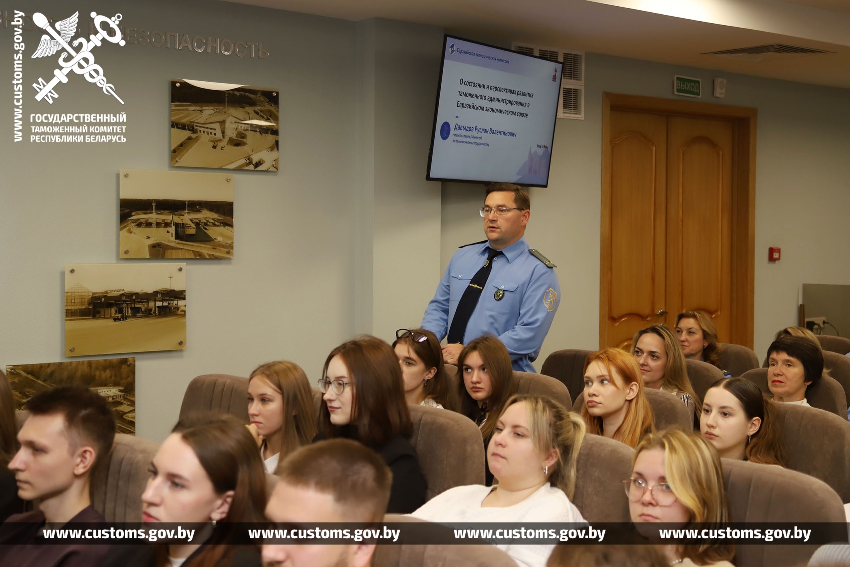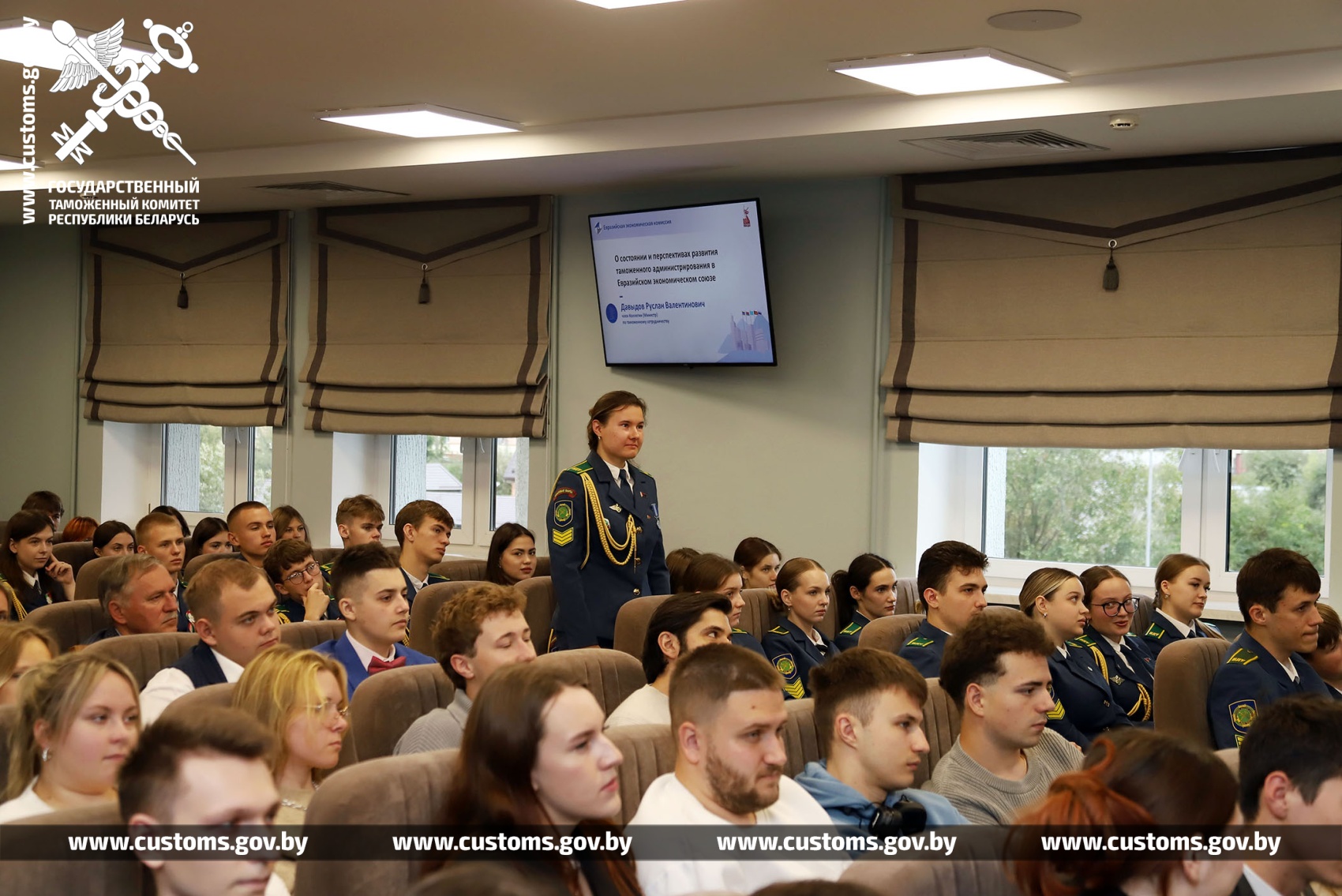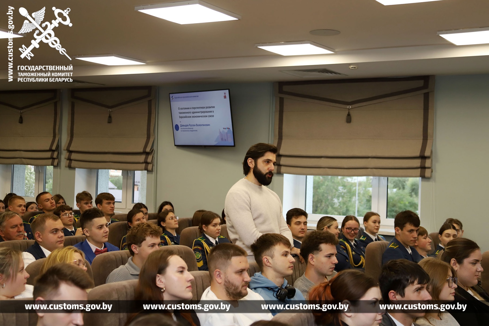 Прибывший с официальным визитом в Минск Министр по таможенному сотрудничеству Евразийской экономической комиссии Руслан Давыдов встретился сегодня со студентами специальности «таможенное дело» Белорусского государственного университета и Белорусского национального технического университета.