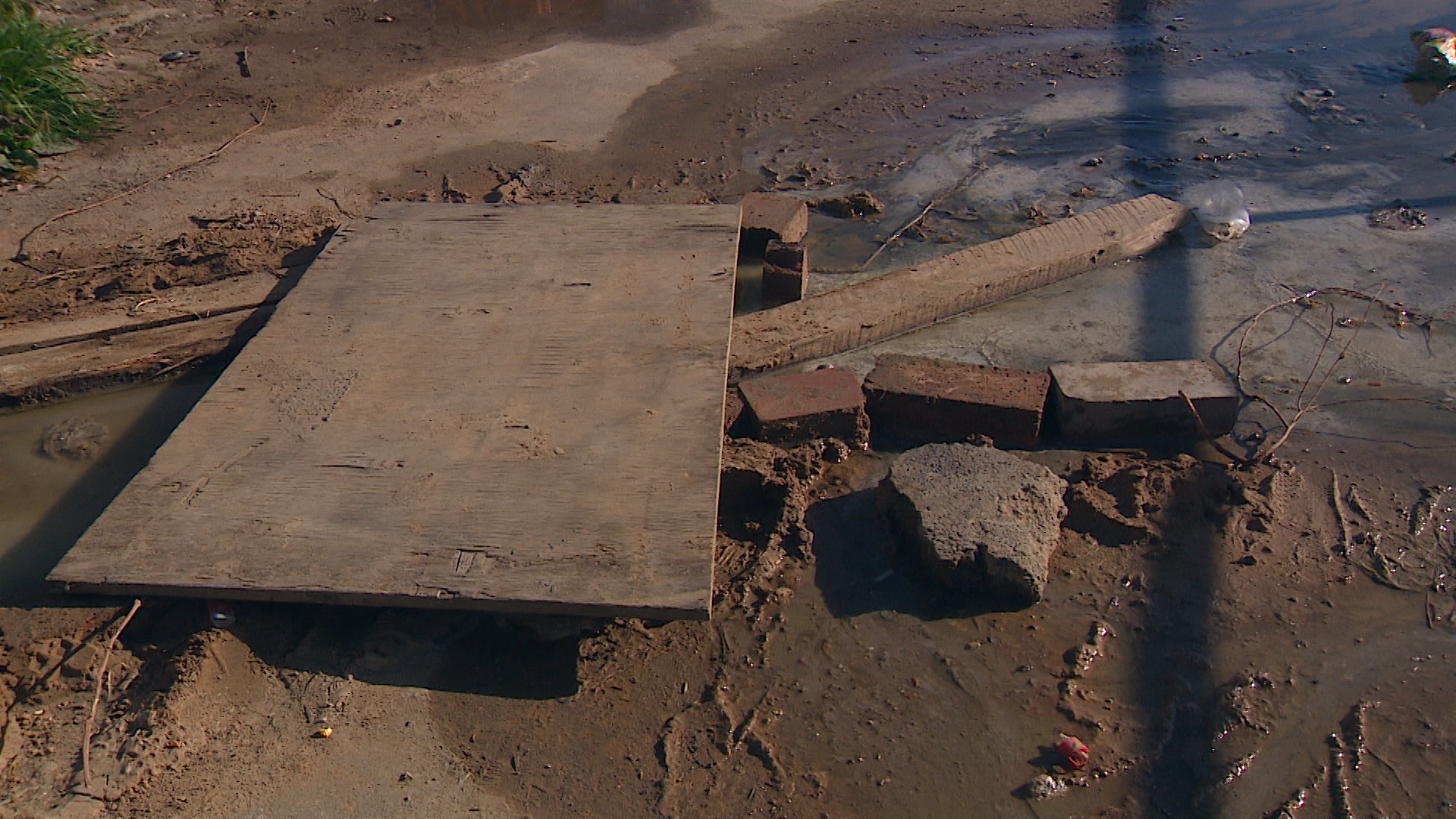Смотреть под ноги нужно в оба. Переходить зловонный ручеек волгоградцам приходится по импровизированному мостику, а вот если мимо проезжает автомобиль, надо быть осторожным, можно и вовсе оказаться под нечистотами.