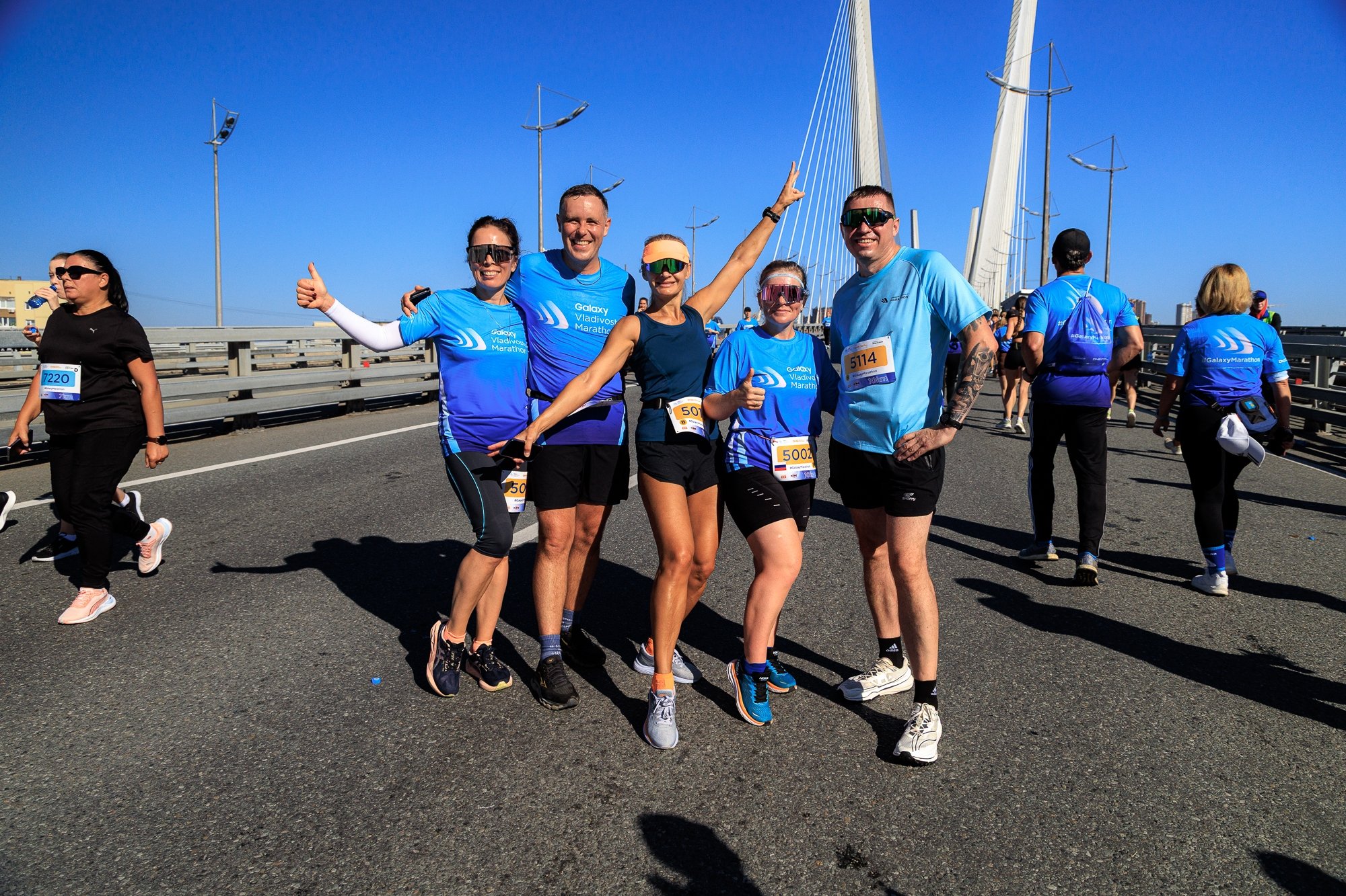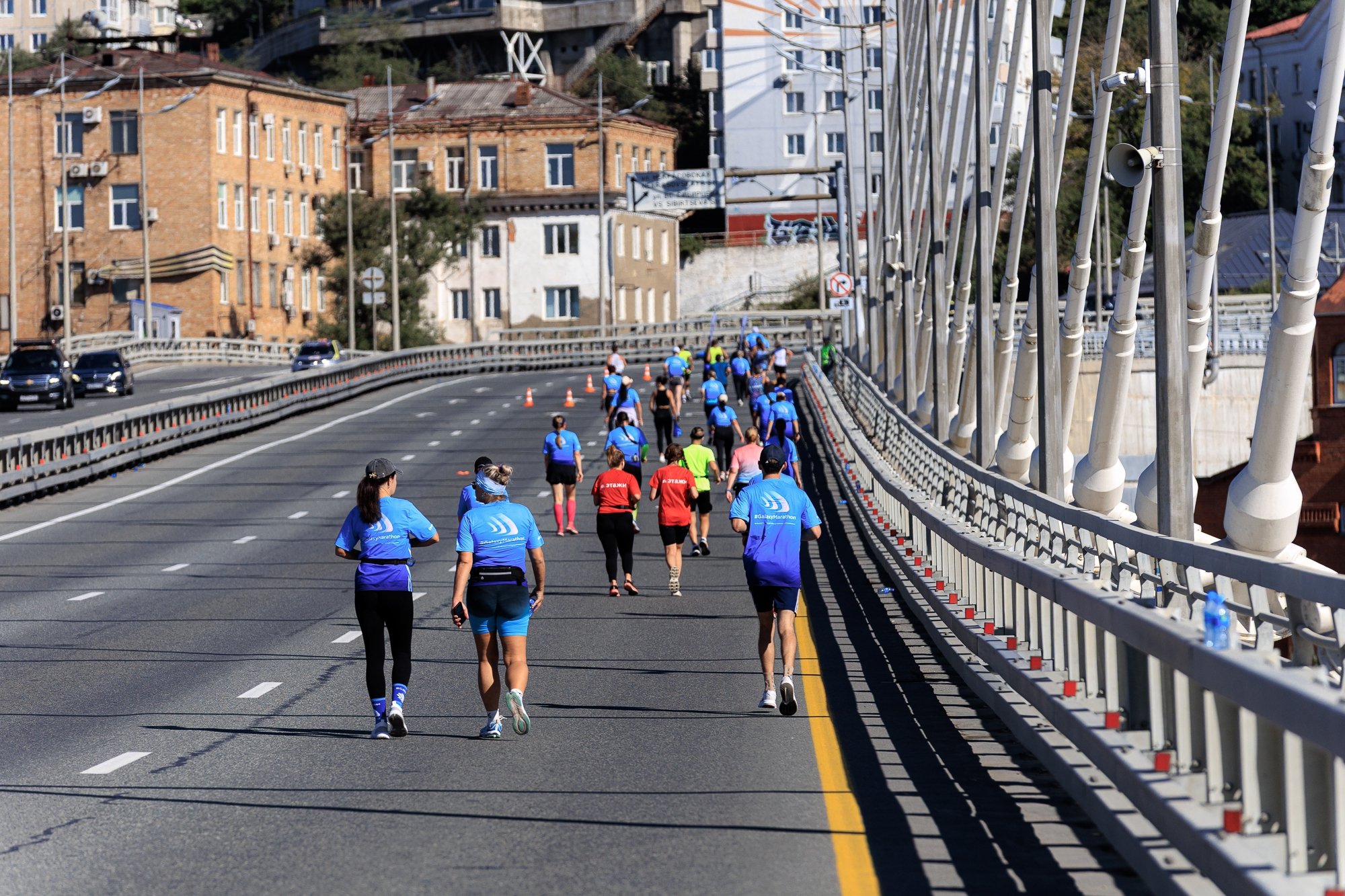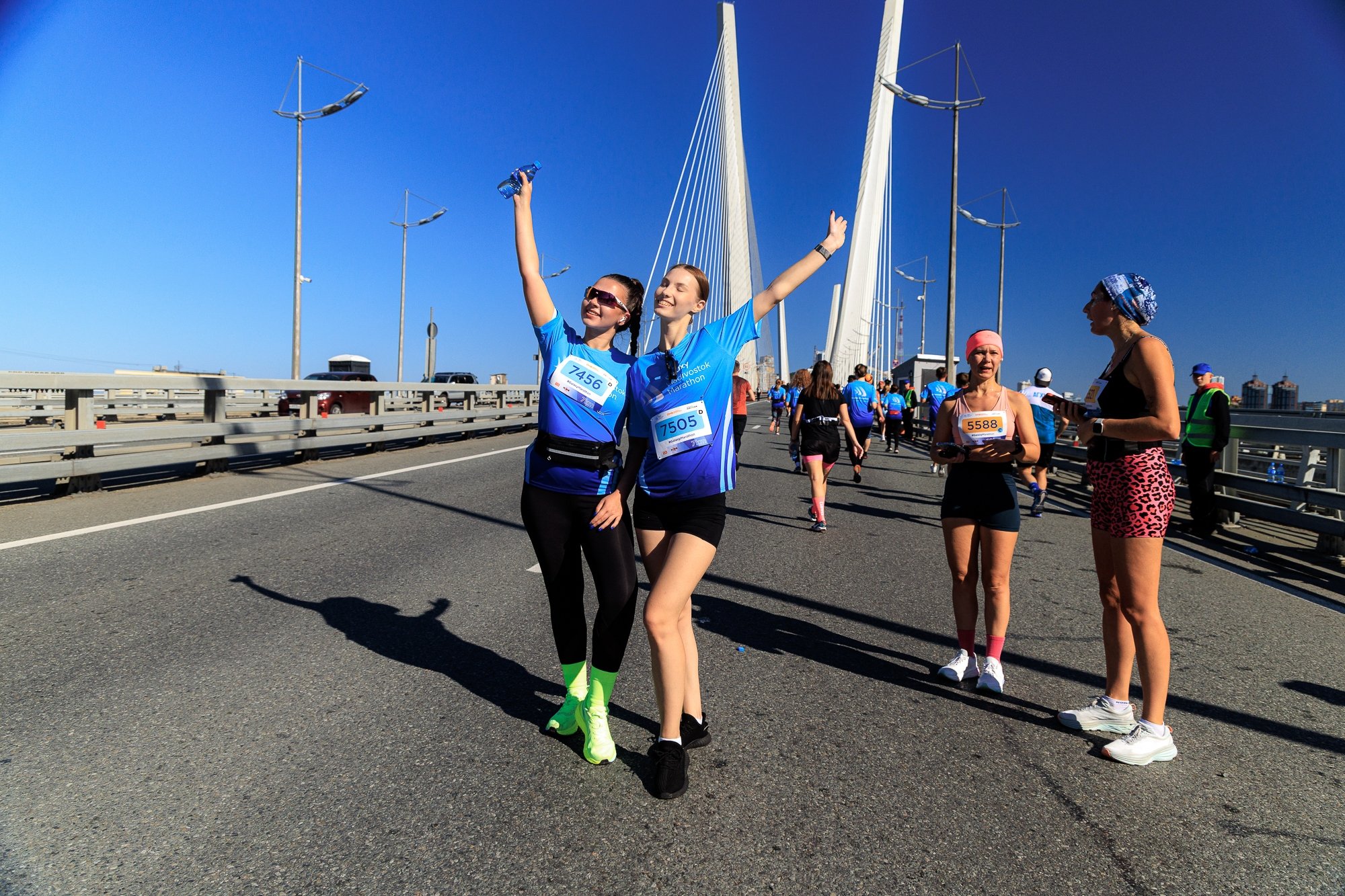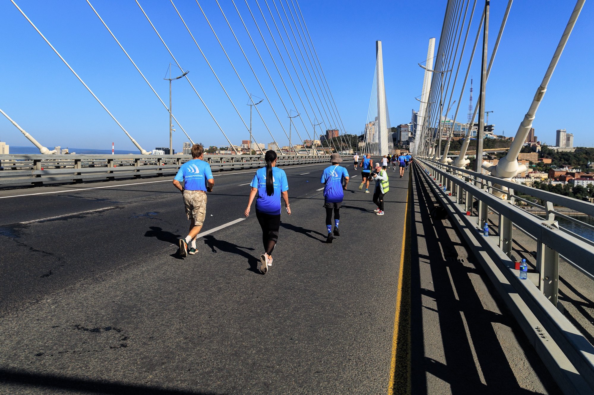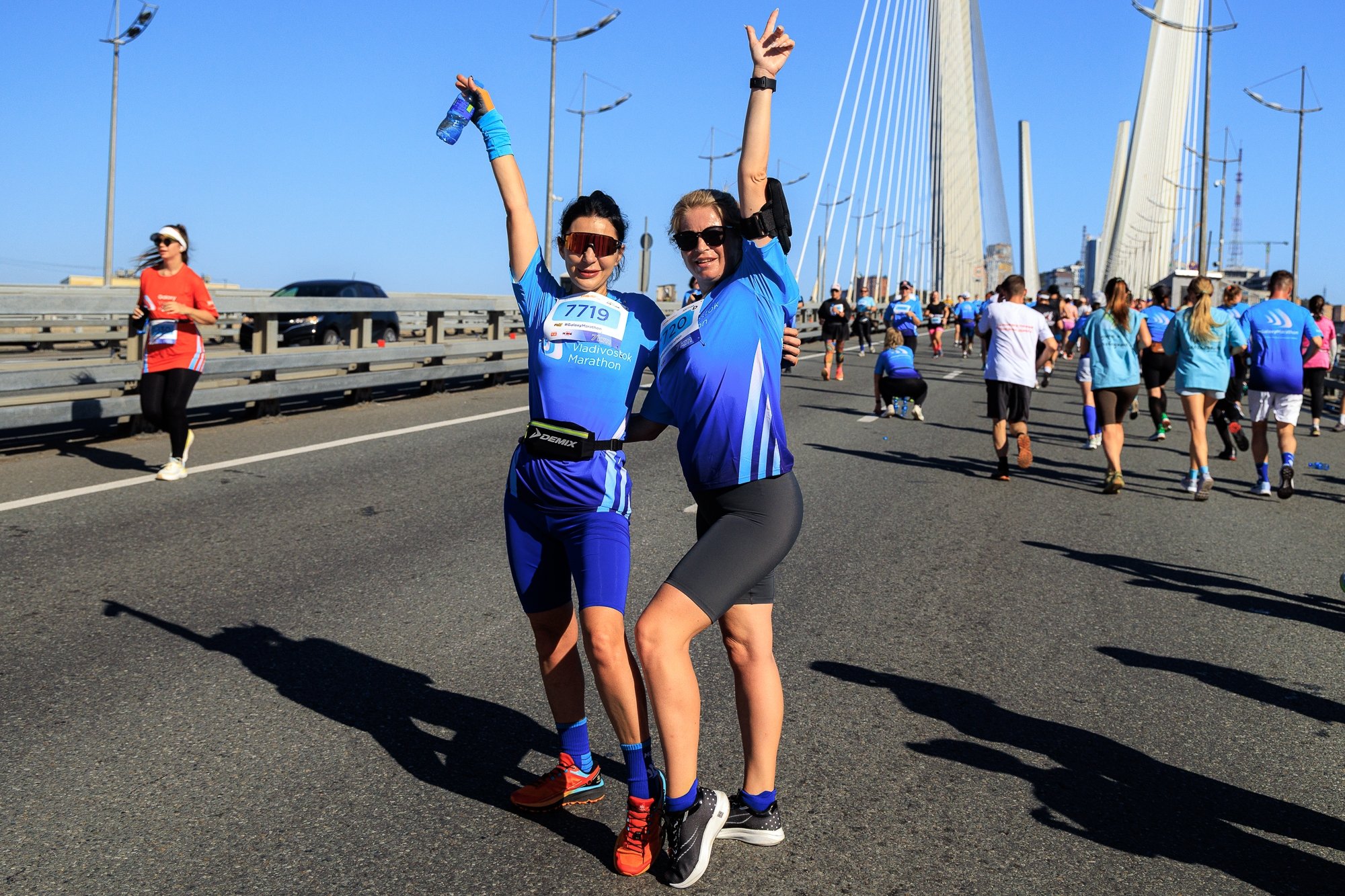 Марафон "Мосты Владивостока" проводился в рамках мероприятий федерального проекта "Повышение доступности туристических продуктов" национального проекта "Туризм и индустрия гостеприимства" при поддержке министерства туризма Приморского края. Организатором выступил беговой клуб RunDnsRun, а генеральным партнером — Группа компаний ДНС.