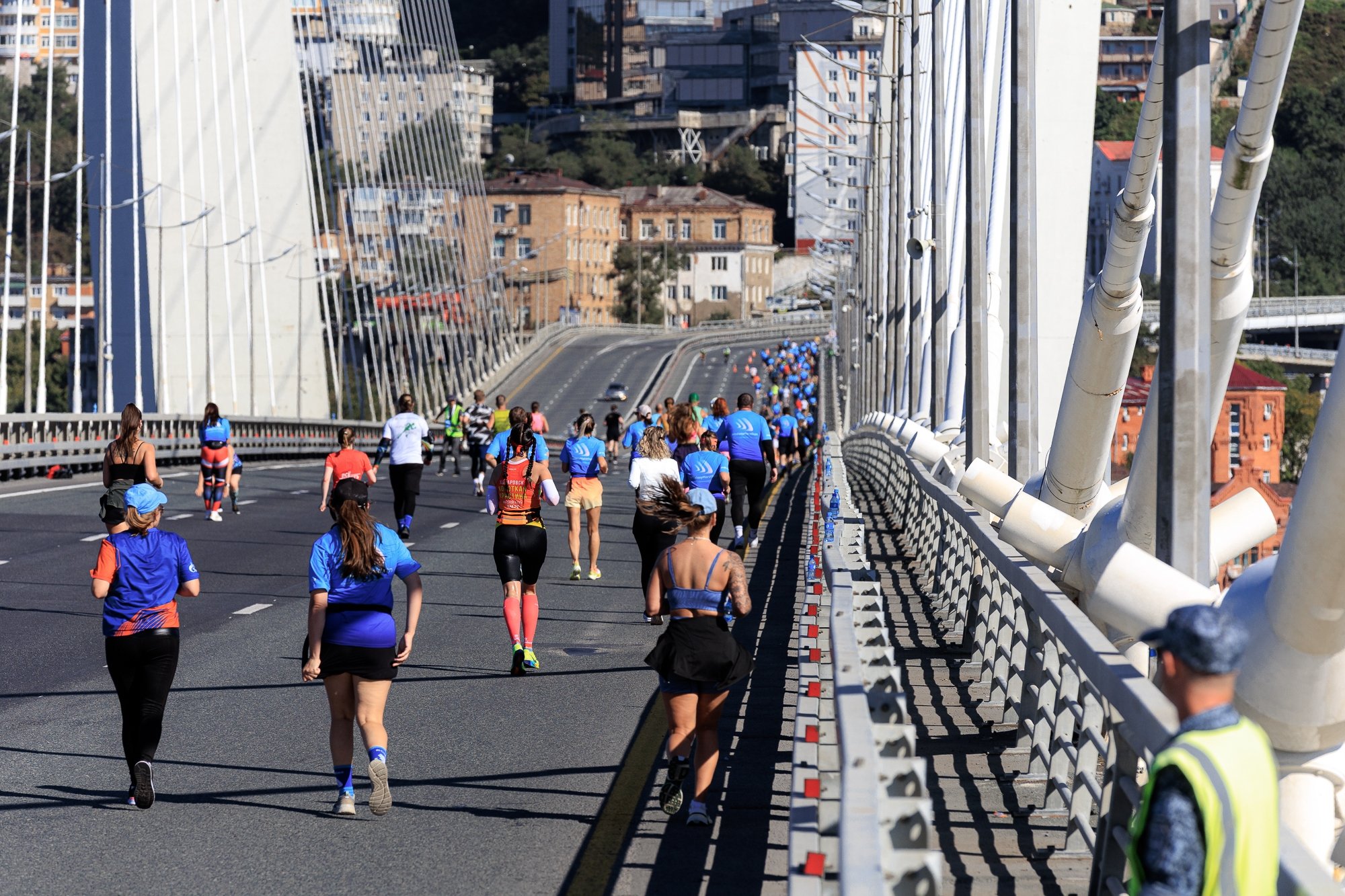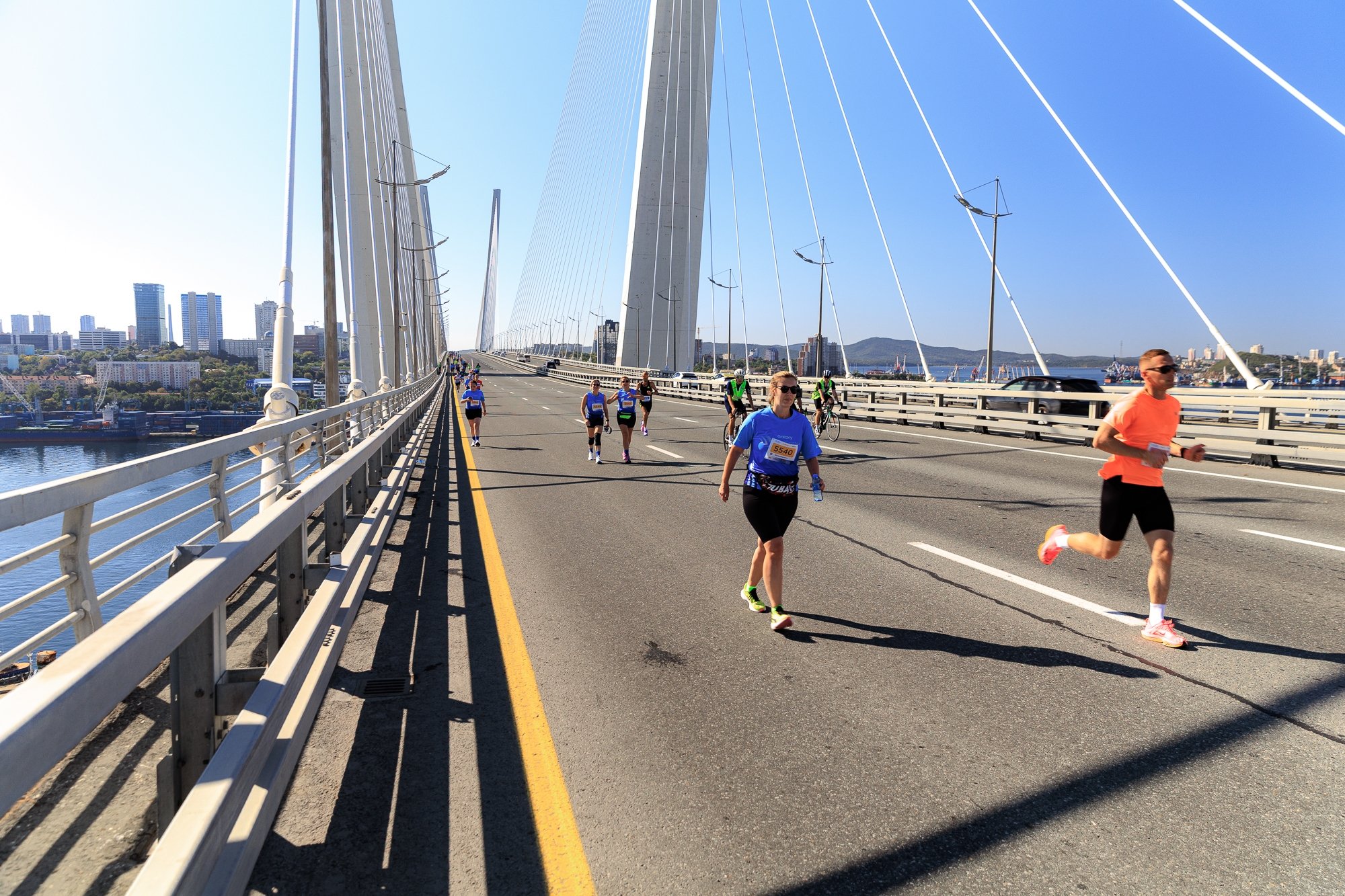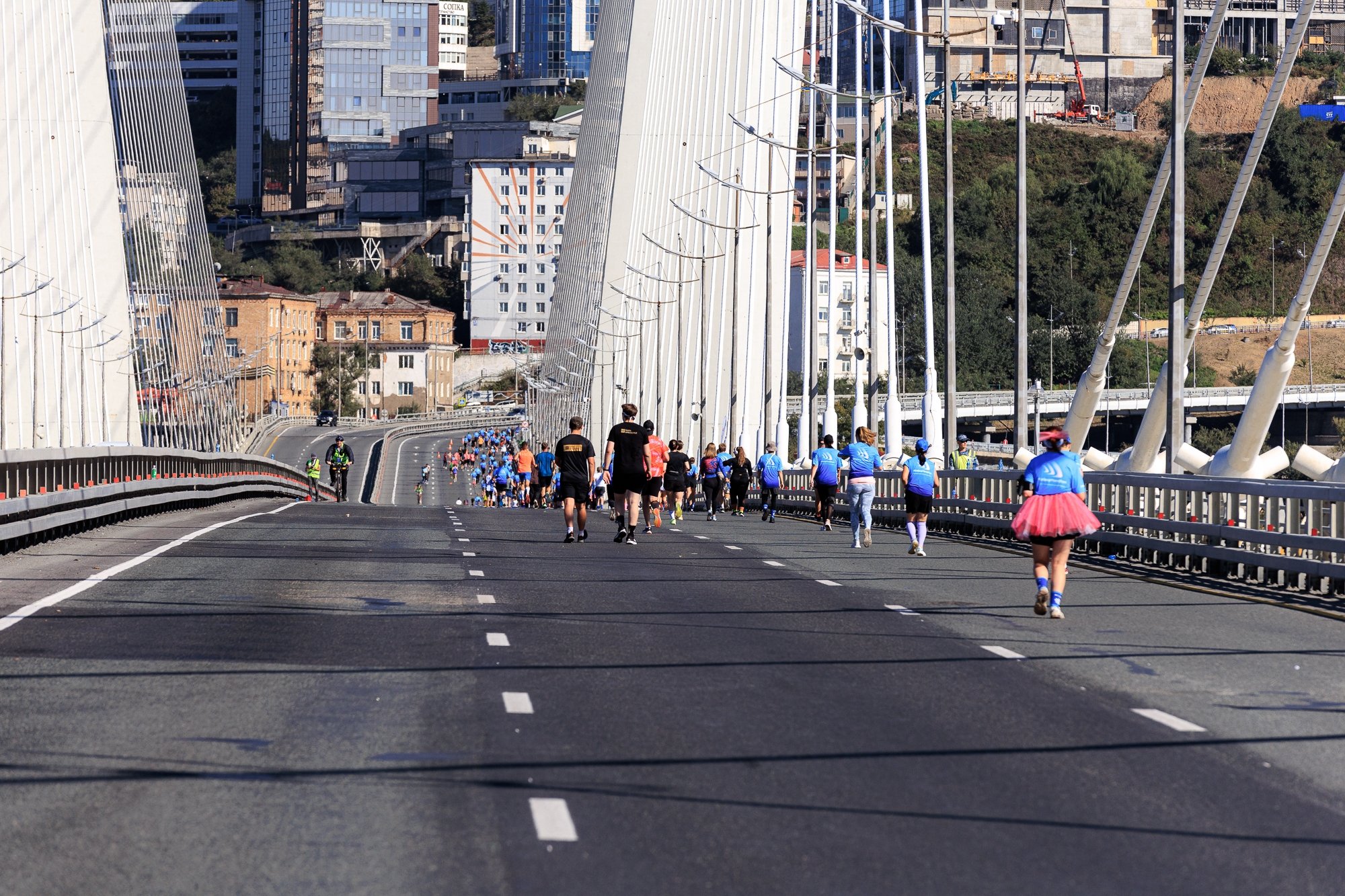Но и это еще не все. Помимо классических дистанций (1, 5, 10, 21,1 и 42,2 км), в программу были добавлены новые — 3, 7 и 28 км. Для самых маленьких спортсменов был организован детский забег на 1 км, также была дистанция для паралимпийского забега. Всех участников ждал красивейший маршрут с потрясающими видами на архитектурные особенности исторической части города, Золотой и Русский мосты и, конечно, на акваторию бухты Золотой Рог и залив Петра Великого.