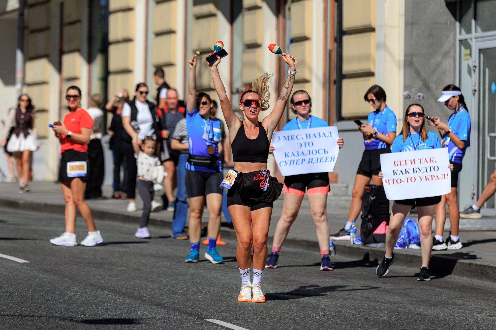 "Мы решили, что каждый, кто пробегает свою дистанцию, — супергерой, только он не носит костюма. Вот мы и решили это показать. Мы бегаем иногда как любители, самым тяжелым сегодня был подъем на Золотой мост, там несколько подъемов, и все они затяжные. В целом хорошая трасса", — рассказала Татьяна.