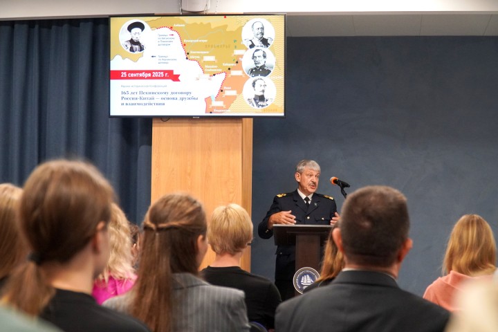 25 сентября в Дальневосточном морском тренажерном центре МГУ им. адм. Г.И. Невельского состоялась научно-историческая конференция на тему «165 лет Пекинскому договору – основа дружбы и взаимодействия России и Китая». Организаторами форума выступили общественные организации Владивостокское морское собрание, Приморское краевое отделение Русского географического общества – Общество изучения Амурского края (ПКО РГО – ОИАК), Приморское отделение Императорского Православного Палестинского Общества, а также Морской государственный университет им.адм. Г.И Невельского.