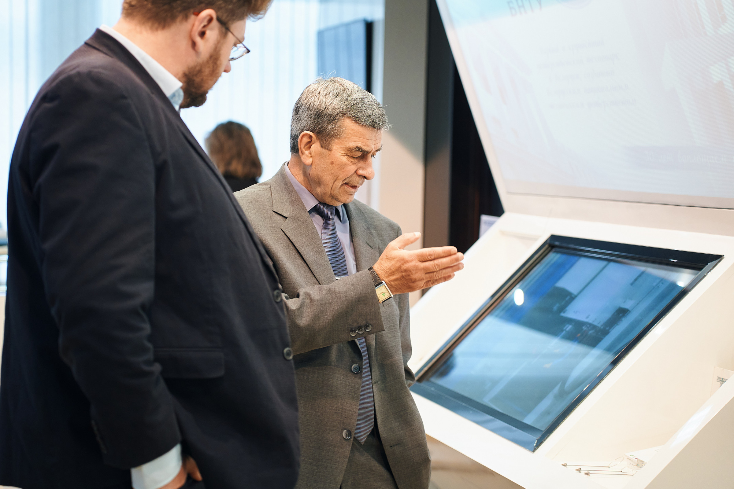 Первый день переговоров проходил на базе Научно-технологического парка БНТУ «Политехник». Георгий Вершина кратко остановился на основных инновационных разработках, находящихся на выставочной экспозиции технопарка.
