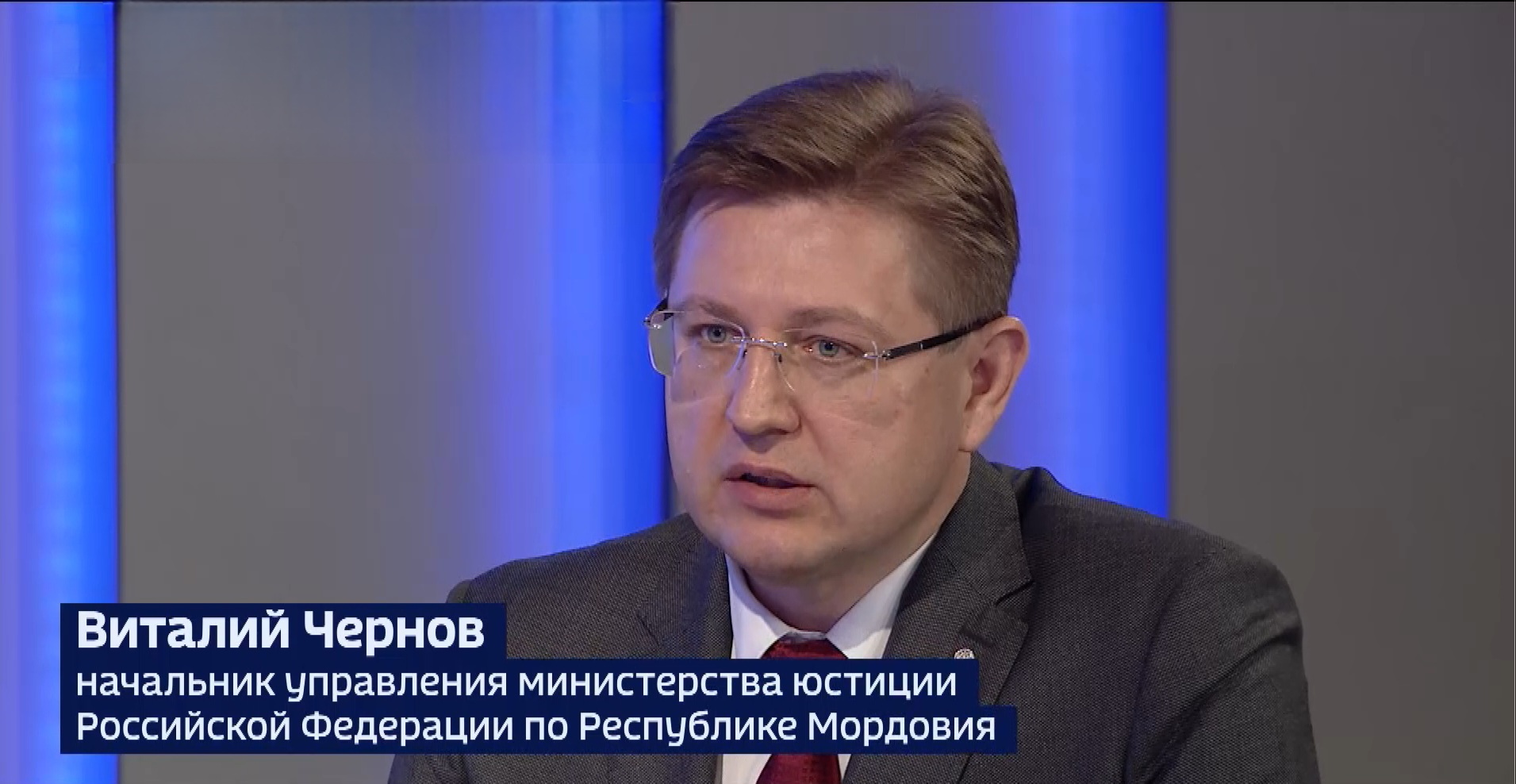 На телевизионном канале «Россия-24» вышла в эфир записанная Государственной телерадиокомпанией «Мордовия» программа «Интервью» с участием начальника Управления Минюста России по Республике Мордовия Виталия Чернова и Президента региональной Адвокатской палаты Александра Амелина.