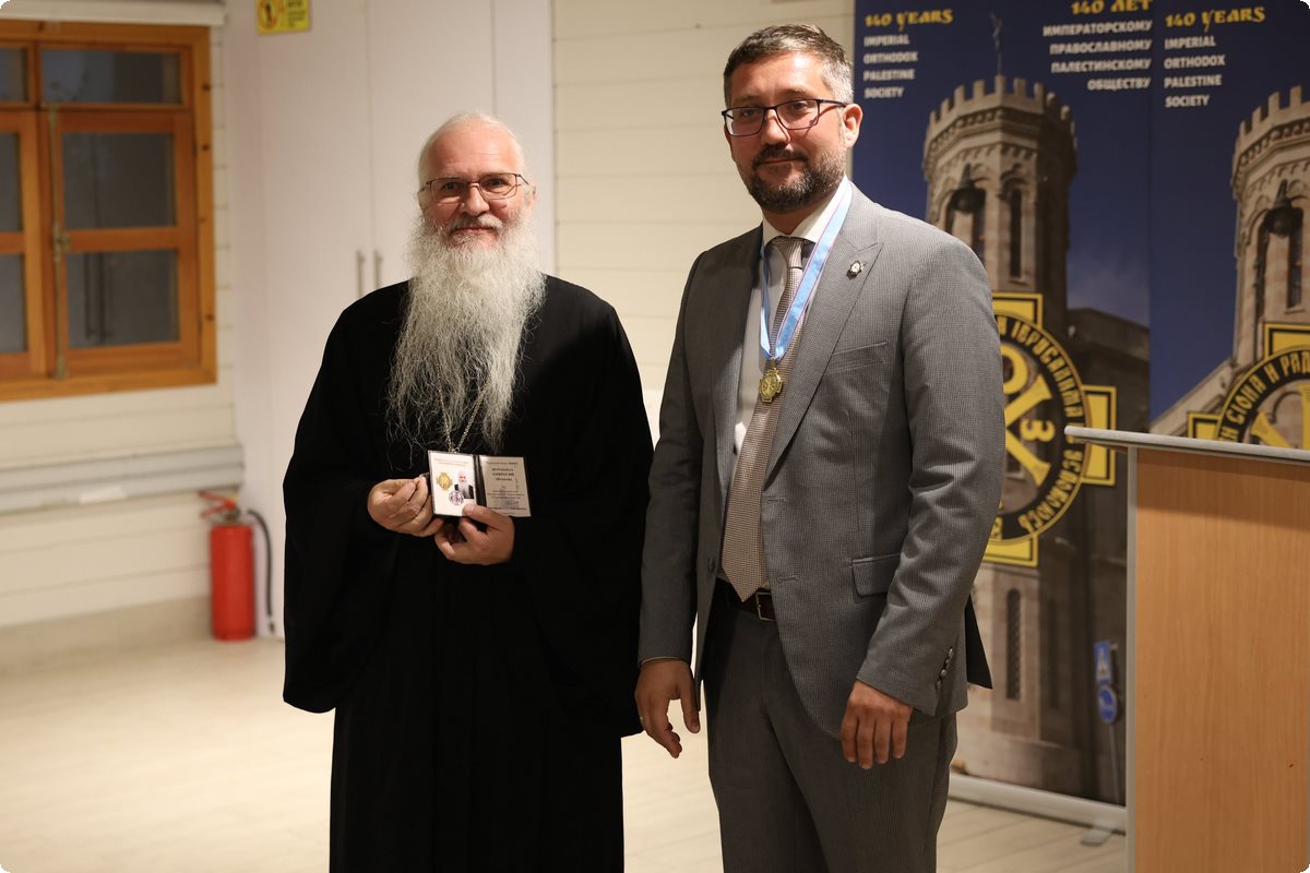 Затем были вручены награды Императорского православного палестинского общества сотруднице Русской духовной миссии в Иерусалиме монахине Екатерине (Копыл), представителю ФГУП «Госзагрансобственность» Р.В. Диканскому и директору Фонда Антонина Капустина и члену Совета ИППО в Израиле Р.И. Ашурбейли.