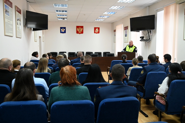 29 сентября 2025 года командир взвода ДПС ГИБДД МУ МВД России «Балашихинское» майор полиции Иван Незнанов в рамках занятий по служебной подготовке с сотрудниками аппарата Главного управления ФСИН Подмосковья провел лекцию по безопасности дорожного движения.