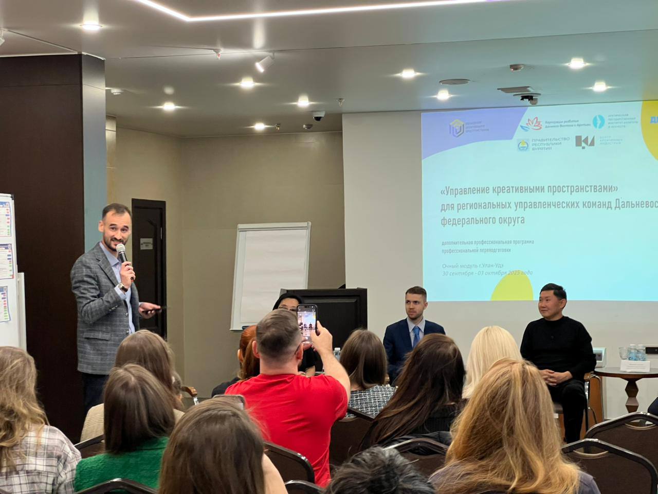 Программа «Управление креативными пространствами» реализуется с 2024 года и направлена на подготовку управленческих команд из числа органов власти, институтов поддержки, креативных центров, предпринимателей и образовательных организаций. Первый этап прошёл в Москве, второй — во Владивостоке и Якутске, третий включает модули в Благовещенске, Улан-Удэ и Петропавловске-Камчатском. Символично, что именно на Байкале участники будут защищать свои проекты: крупнейшее озеро планеты становится не только природным, но и культурным ориентиром для новых идей креативной экономики Дальнего Востока.