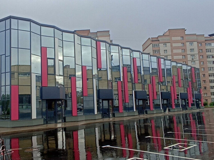 Пока внутри функционирует только один продуктовый магазин «Пятерочка» на первом этаже. Всё остальное пространство затянуто баннерами с надписью «Скоро открытие».
