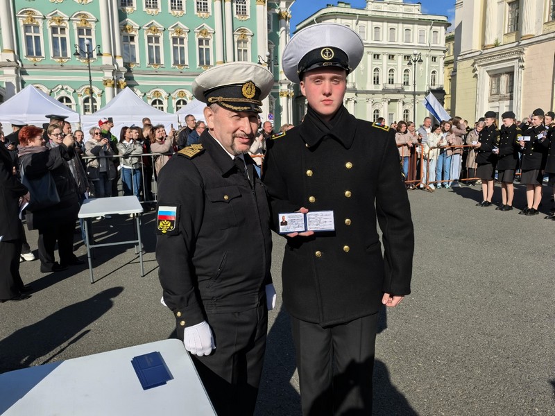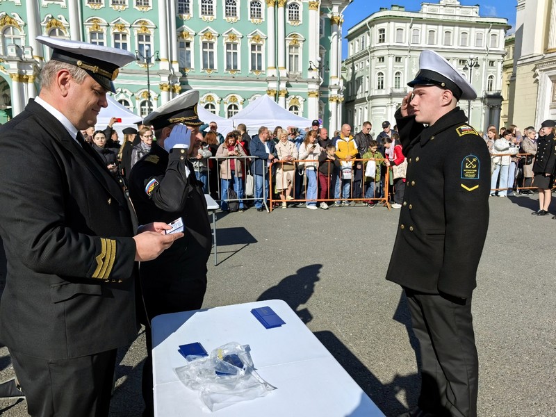 27 сентября на Дворцовой площади Санкт-Петербурга состоялась церемония посвящения в курсанты Государственного университета морского и речного флота имени адмирала С.О. Макарова. В торжественном мероприятии приняли участие 540 первокурсников, среди которых были представители Института «Морская академия», Колледжа и филиалов университета, подведомственных Росморречфлоту, включая наших курсантов - Кириенко Ярослав (11-ЭР), Владимиров Дмитрий (11-ЭР), Серебрянский Матвей (11-СВ), Абрамов Семён (11-СВ), Точенов Илья (11-ВП) и Травников Михаил (11-ВП).