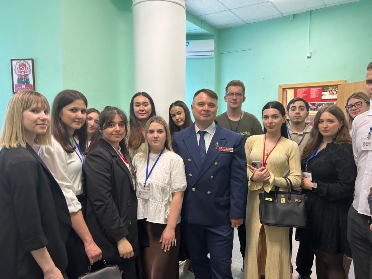 Завершилась экскурсия визитом в музей Волгоградского областного суда, где студенты познакомились с экспонатами, отражающими историю развития судебной системы региона. Отдельное внимание было уделено экспозиции, посвящённой 80-летию победы в Великой Отечественной войне. Тюменцев А.Н. подробно рассказал о судьях-фронтовиках и заслуженных юристах РСФСР А.М. Петрове и М.К. Братишке.