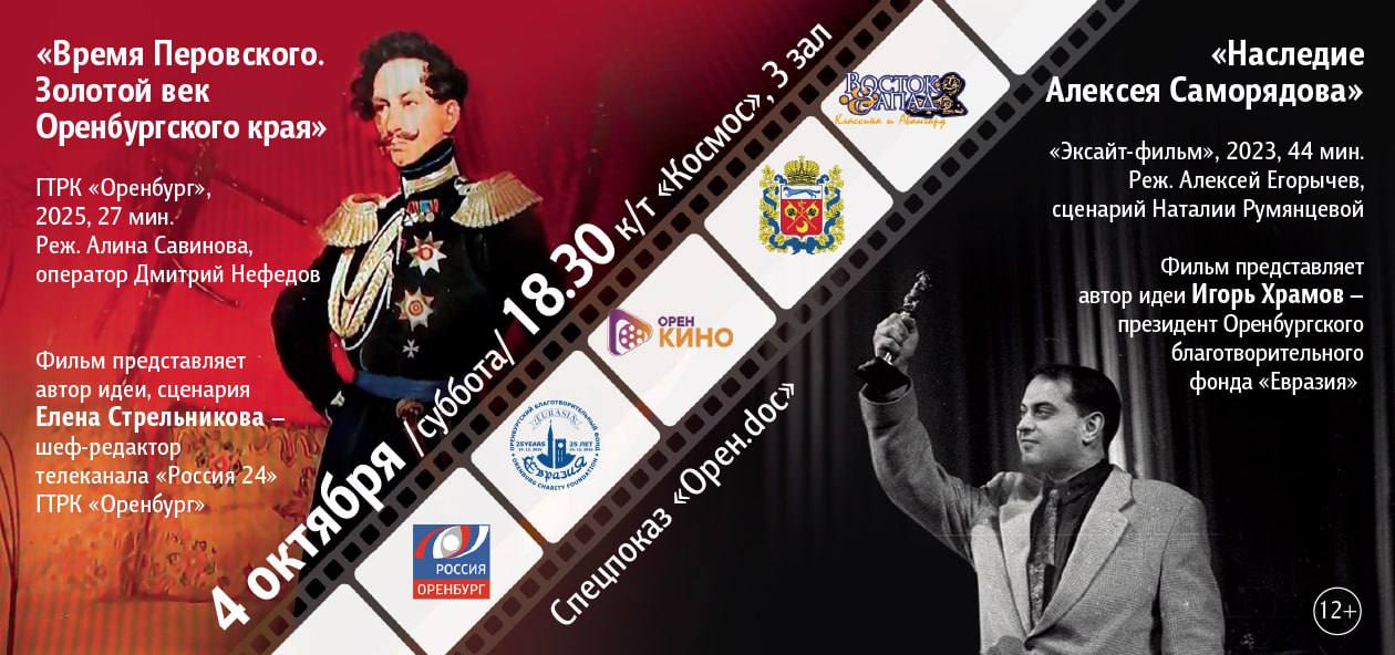 4 октября на XVIII кинофестивале «Восток & Запад. Классика и Авангард» в кинотеатре «Космос» покажут два документальных фильма о знаменитых оренбуржцах.