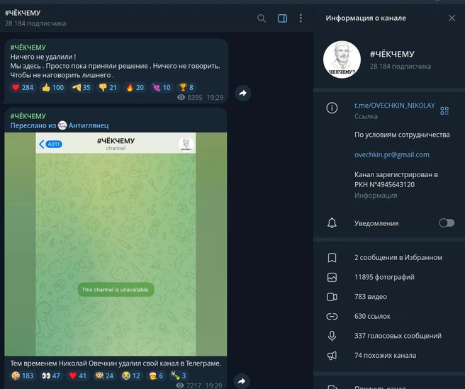 Сначала появилась информация, что Николай якобы удалил свой телеграм-канал, но он тут же опроверг ее.