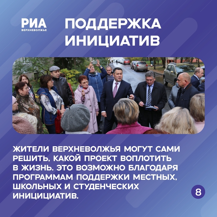 Список важных проектов можно продолжать: подробно расписать благоустройство городов, возведение социальной инфраструктуры, создание особых экономических зон для привлечения инвесторов, успешное импортозамещение, развитие туризма и многое другое, на все не хватит газетных полос. Но одним из главных достижений мы бы назвали новое мироощущение. Сами того не заметив, мы полюбили Верхневолжье, ушла глупая манера говорить о родной земле в уничижительном тоне. А ведь еще 10 лет назад московские блогеры катались к нам искать «хайповый треш». Тогда многие жители региона лишь пожимали плечами, мол, ну да, вот так у нас, извините. Сейчас всё по-другому, да и блогеры приезжают больше за историческими красотами и самобытной кухней. Назовем это престижем региона.