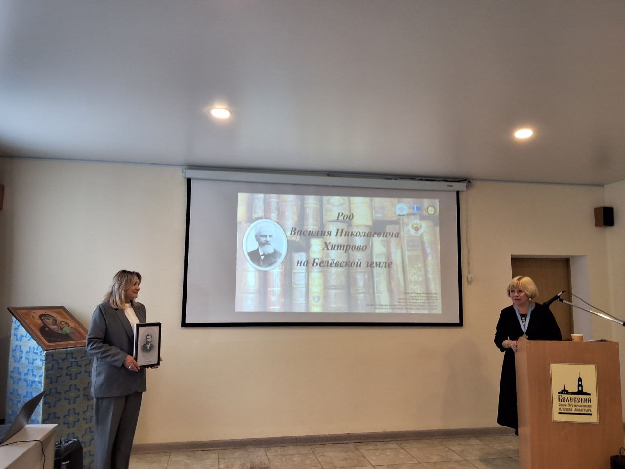С основным научным докладом «Род Василия Николаевича Хитрово на Белёвской земле» выступила заместитель руководителя Научной секции ИППО, доктор исторических наук, профессор кафедры истории России ИИиП МПГУ Галина Аксенова. Она также передала в дар Белёвскому районному художественно-краеведческому музею уникальные фотографии членов семьи В.Н. Хитрово, печатные труды Василия Хитрово, современные периодические издания ИППО и старые книги, которые могли находиться в библиотеке основателя ИППО. Цель этого дара – создание в Белёвском музее экспозиции, посвященной Василию Хитрово и представителям его рода, которые на протяжении двух столетий жили на Белёвской земле.