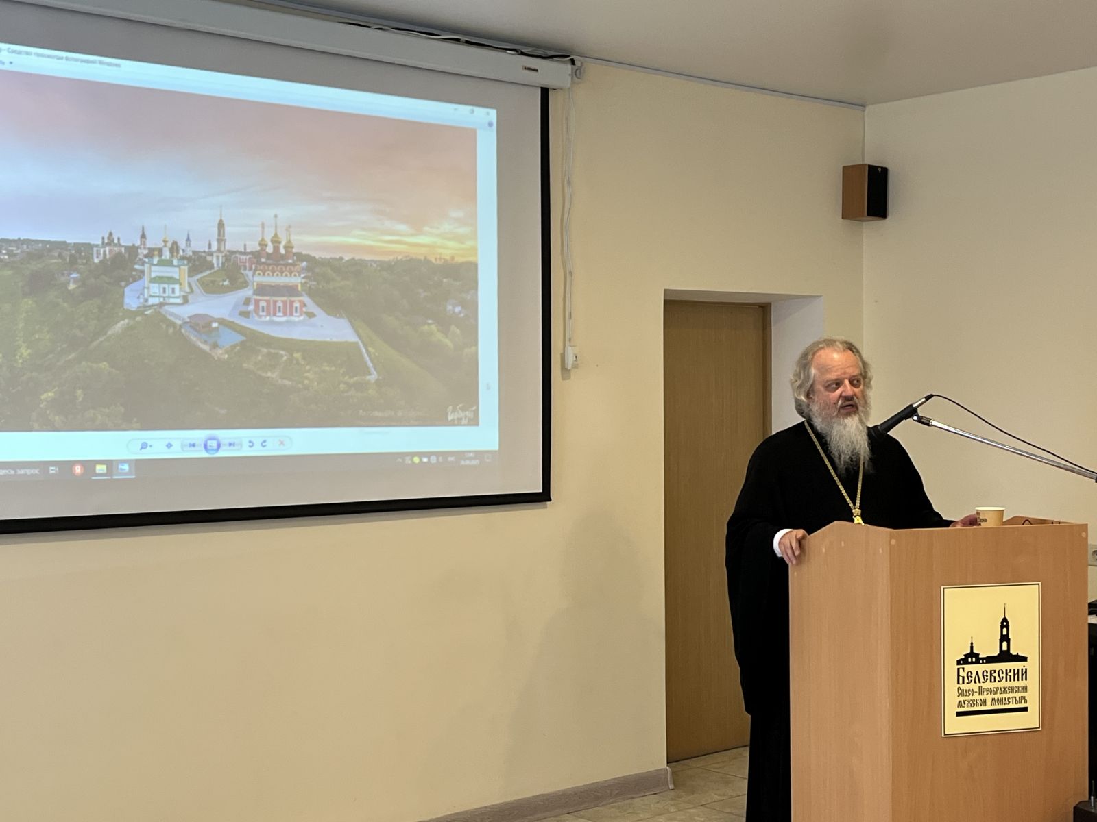 С докладом, посвященным истории Спасо-Преображенского мужского монастыря выступил кандидат богословия, заместитель ректора МДА, игумен Герасим (Дьячков), автор книг «Спасо-Преображенский монастырь Тульской епархии. История в лицах» и «Белёвский Спасо-Преображенский монастырь Тульской епархии: от основания до конца XVII в.».