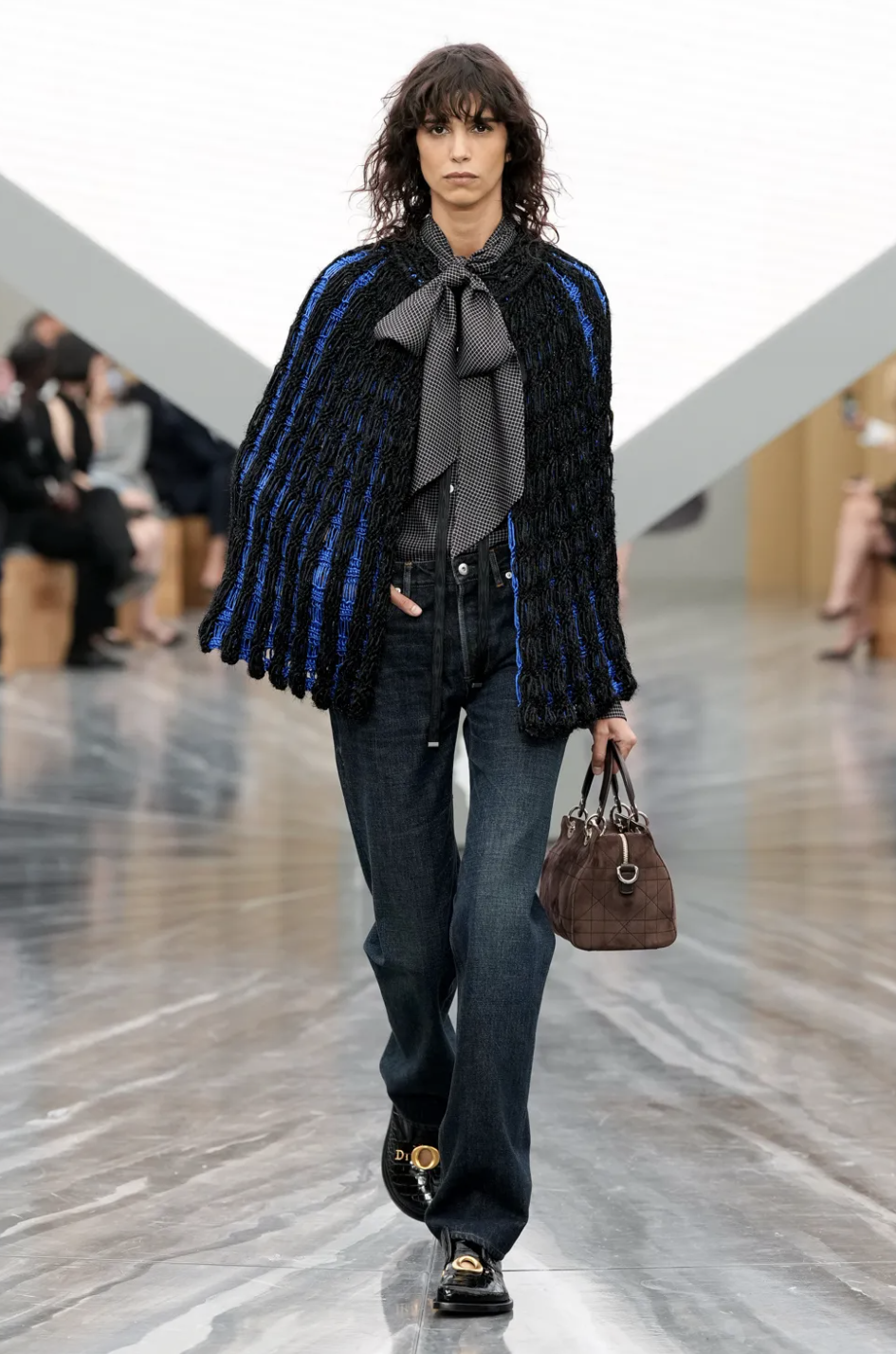 Порадовали явные параллели с мужской коллекцией — теперь у фанатов «Дракулы», современных аристократов и экстравагантных художников появились боевые подруги. Некоторые из них примерили буквально ту же одежду, например, кейпы и зеленый пиджак из донегали. На ноги, помимо атласных туфель с бантами, которые Андерсон уже засветил в соцсетях в преддверии показа, Dior предлагают надевать массивные лоферы и туфли с ушками (мы поймали себя на ассоциации с кроликом Playboy).