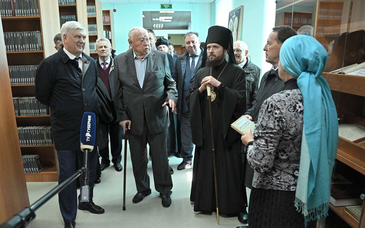 Гости посетили библиотеку церковно-приходской школы, открытую в 2008 году. Сейчас в фонде насчитывается около 22 тысячи книг и брошюр. Особенно ценной является серия «Жизнь замечательных людей», состоящая из 1403 экземпляров. Александр Гусев и Алексей Гордеев передали библиотеке два редких экземпляра 1892 и 1896 годов. Губернатор также пообещал вскоре пополнить коллекцию, подарив второе издание «Воронежской энциклопедии», которой пока нет в библиотеке.