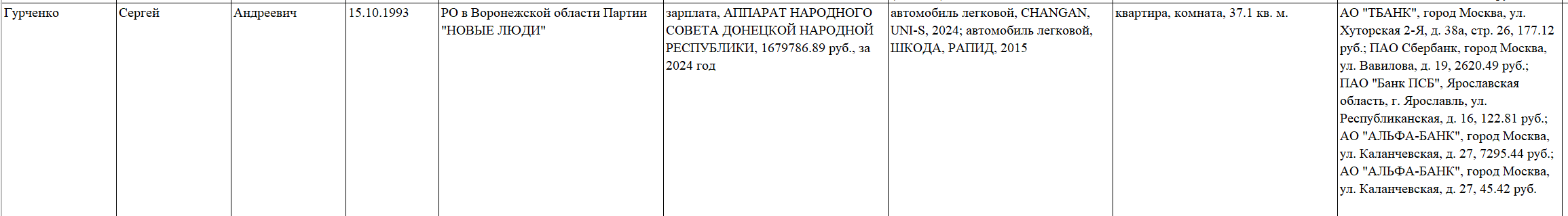 Вернувшийся из ДНР в Воронеж лидер реготделения, а ныне председатель партийной фракции в областной Думе заработал в Донецке 1 млн 679 тыс. рублей. Это заработная плата, которую Гурченко выплачивали из аппарата Народного совета республики. Там он занимал пост зампредседателя комитета по развитию предпринимательства, инвестициям и экономической политике. Сейчас Гурченко на этой должности заменил однопартиец Петр Потапенко. Забавное совпадение – секретарем в комитете является человек со знакомой для многих воронежцев фамилией – Рымарь. Однако Рымарь в ДНР – единоросс. Отметим, что в отличие от КПРФ, «Новые люди» не платили денежное вознаграждение своему региональному руководителю. Опять же, это следует из официальных сведений.