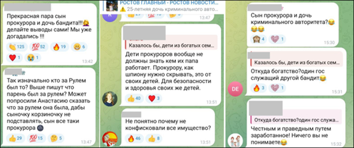 О скандальном ДТП судачит весь регион // Скриншот комментариев с ТГ-канала "Ростов главный"