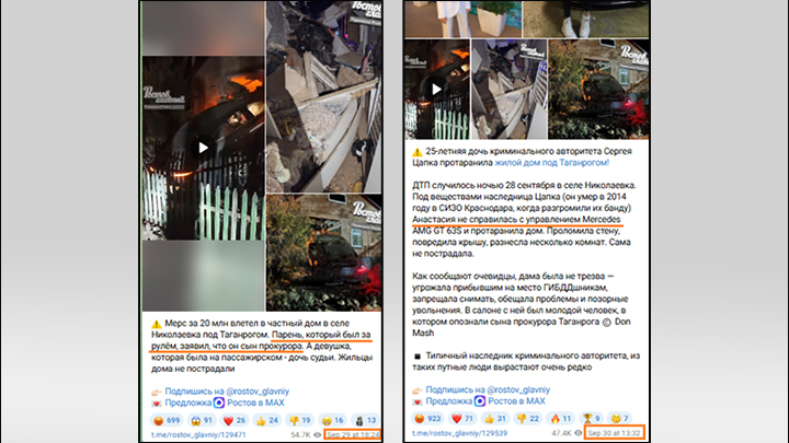 Местные паблики сначала сообщили, что за рулём был мужчина, и только на следующий день назвали водителем девушку // Скриншот с ТГ-канала "Ростов главный"