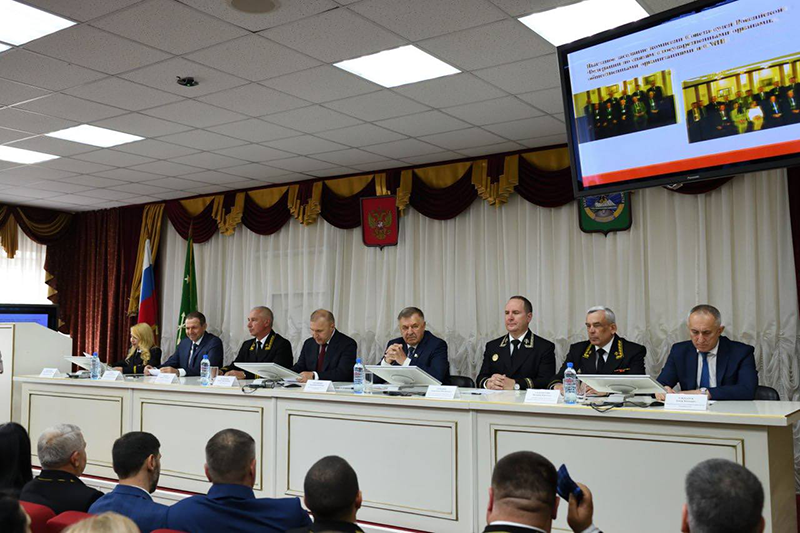В  работе собрания приняли участие Глава Республики Адыгея Кумпилов М.К., Председатель Государственного Совета-Хасэ Республики Адыгея Нарожный В.И., главный федеральный инспектор Аппарата Полномочного представителя Президента РФ в ЮФО по Республике Адыгея Дрокин С.Л., председатель Майкопского гарнизонного военного суда Соломатин В.Ю., заместитель председателя Совета ветеранов судебной системы Тлехатук А.К., начальник Управления судебного департамента в Республике Адыгея Хакуй Ю.Г., начальник Управления по обеспечению деятельности мировых судей Республики Адыгея Чесебиев К.А.