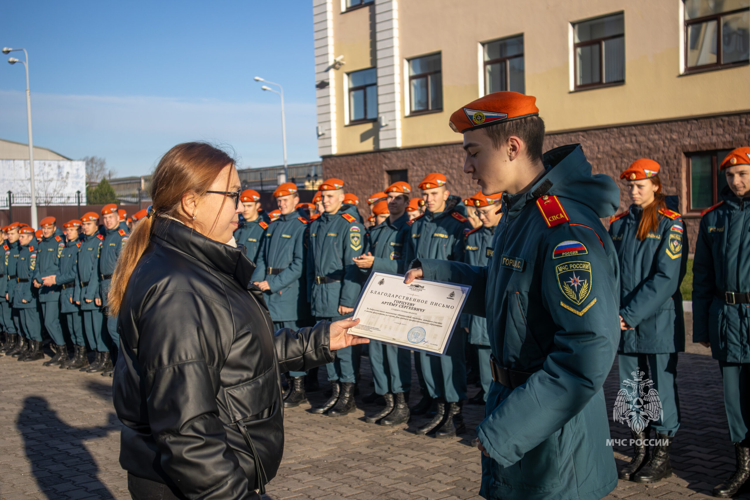На построении студентам факультета среднего профессионального образования были вручены почётные грамоты и объявлены благодарности от начальника академии за достижения в учёбе, общественной деятельности, спортивные победы и творческие успехи.