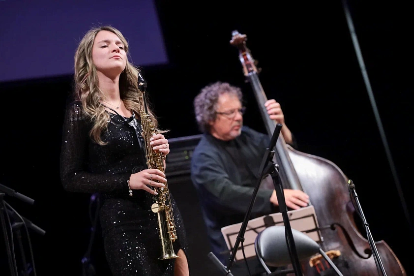 — Да, основа нашей джазовой ритм-секции — это знаменитый контрабасист Андрей Иванов и один из лучших барабанщиков мира Давид Ткебучава. Также с нами сыграет и молодое поколение музыкантов — обладательница Гран-при телевизионного конкурса «Синяя птица», победительница Московского международного конкурса Saxotone саксофонистка Софья Тюрина и победитель Международного конкурса флейтистов имени Гнесиных в рамках проекта Gnessin Competition for Young Musicians Владимир Съянов. Софья — уже известный музыкант и стипендиат нашего фонда «Новые имена». А Володя — юный, но невероятно талантливый музыкант из Воронежа, который пришёл на мастер-класс нашего летнего фестиваля в Суздале и так нам понравился, что мы пригласили его стать частью нашей джазовой команды.